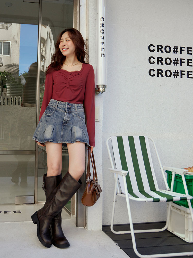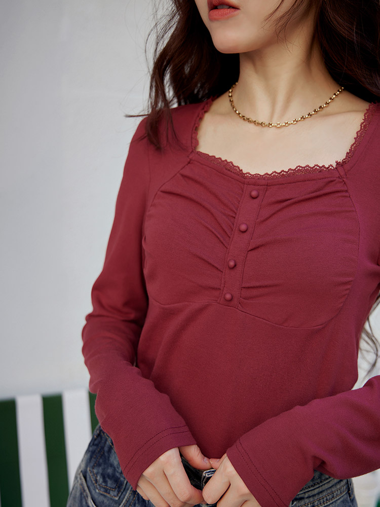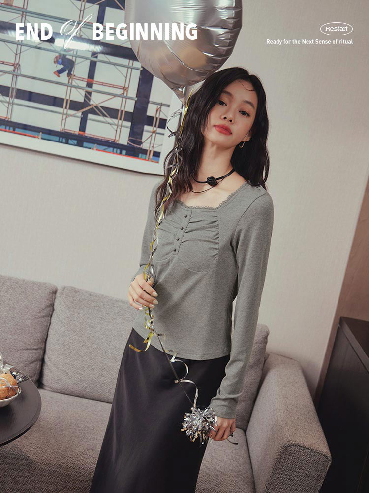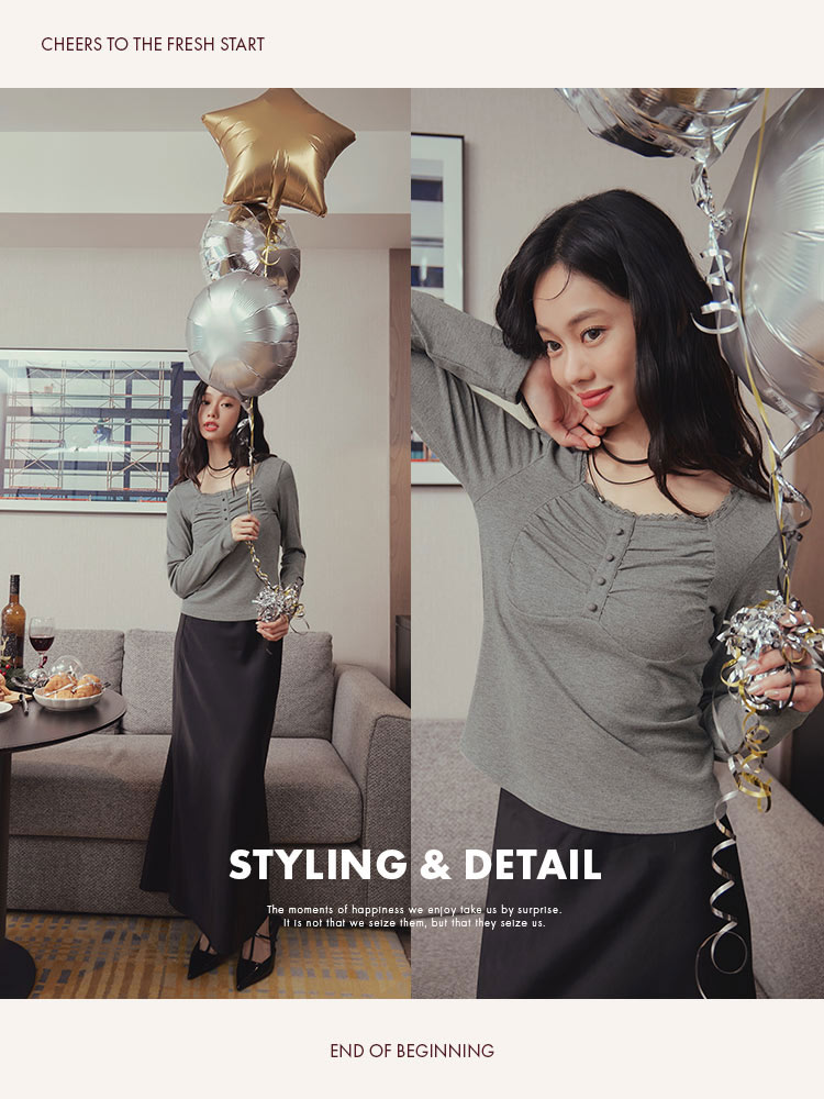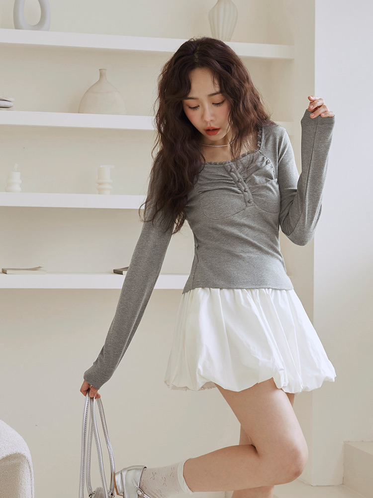 Product Feature: โ Crafted from a soft, skin-friendly fabric. โ Features a flattering square neckline. โ Designed with three-dimensional ruched detailing and button accents.