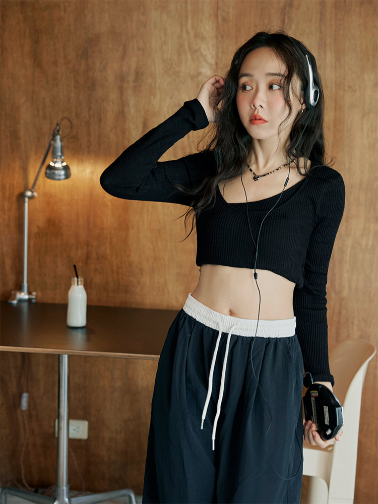 Product Feature: โ Crafted from a soft, cotton-blend fabric for ultimate comfort. โ Features a flattering ribbed texture. โ Designed with a stylish, figure-flattering cropped length.