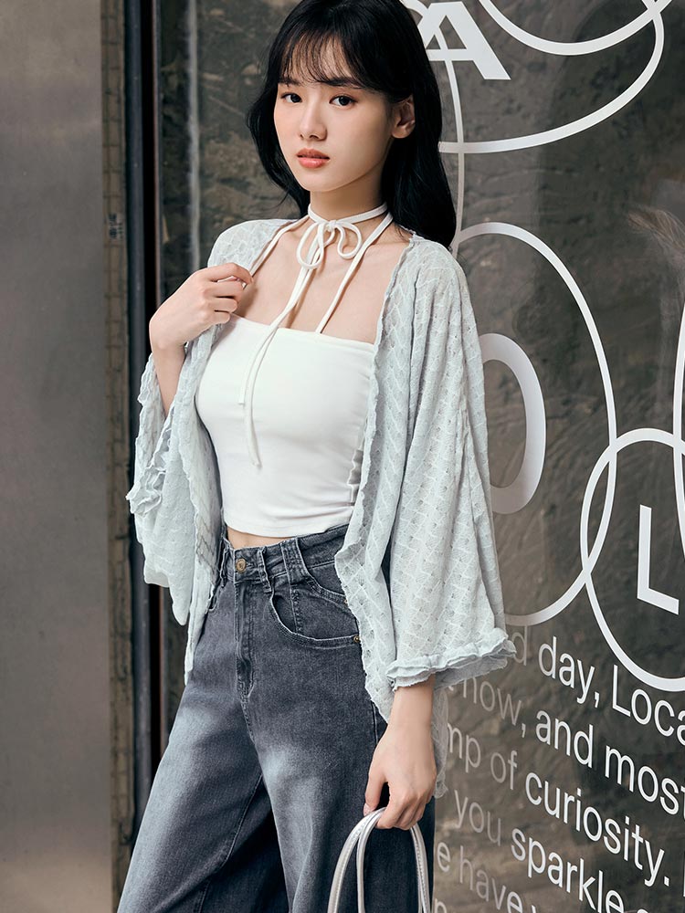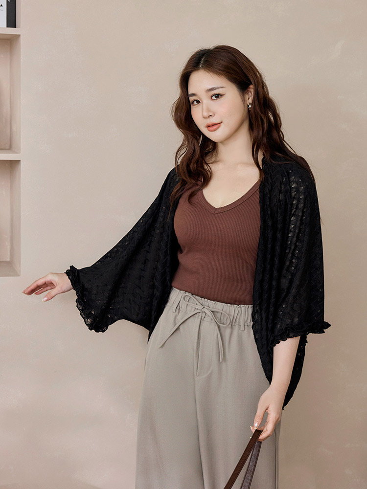 Product Feature: โ Crafted from soft, sheer lace that feels gentle on the skin. โ Features a flattering, flowing design. โ Designed with a longer length at the back for a balanced silhouette. โ The sleeves provide coverage.