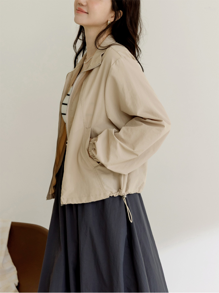Zip-Up Drawstring Collar Jacket