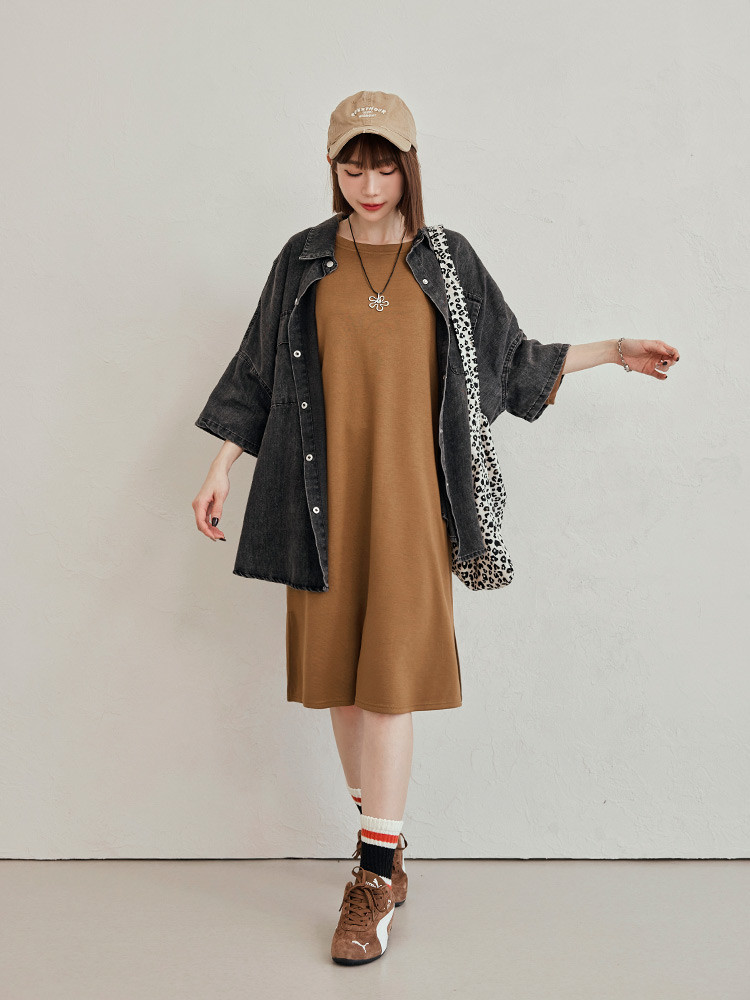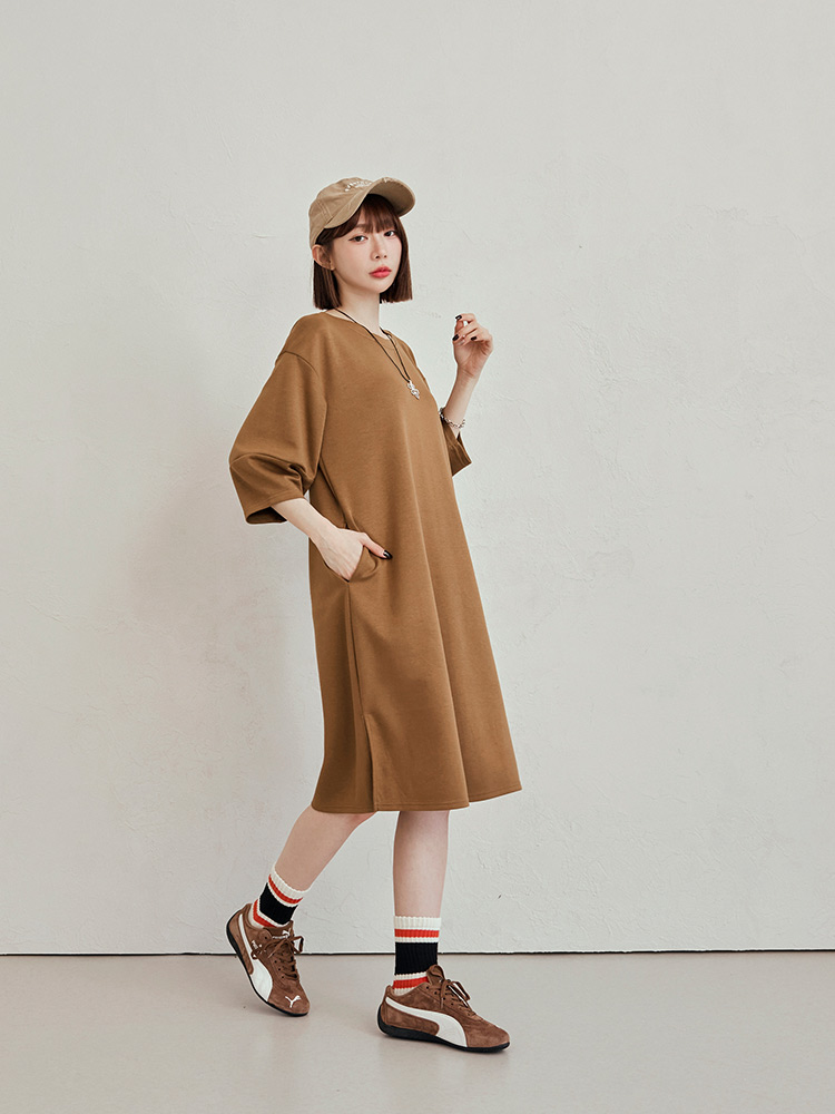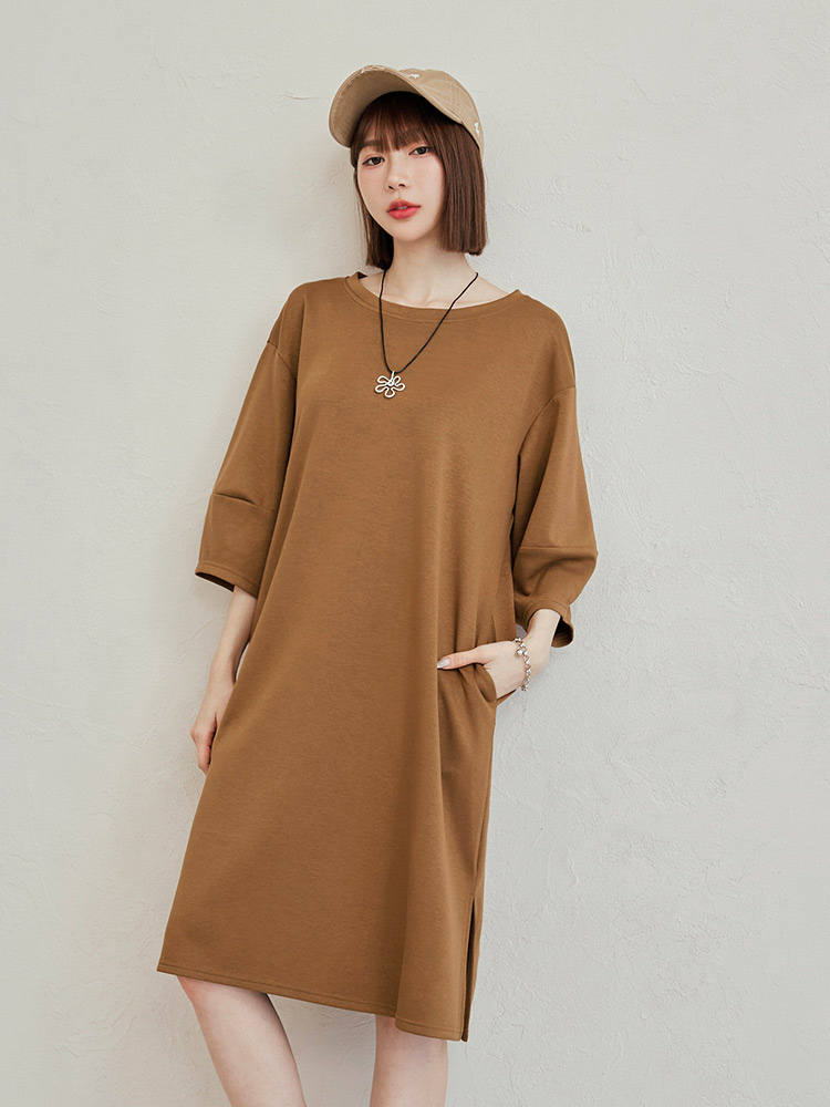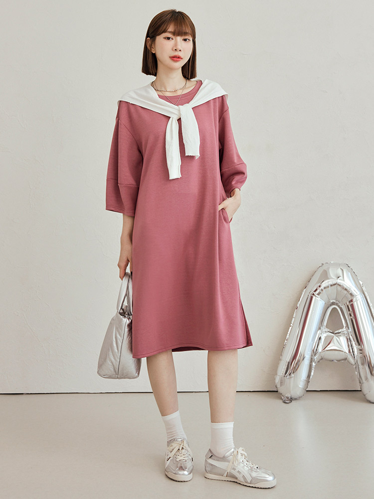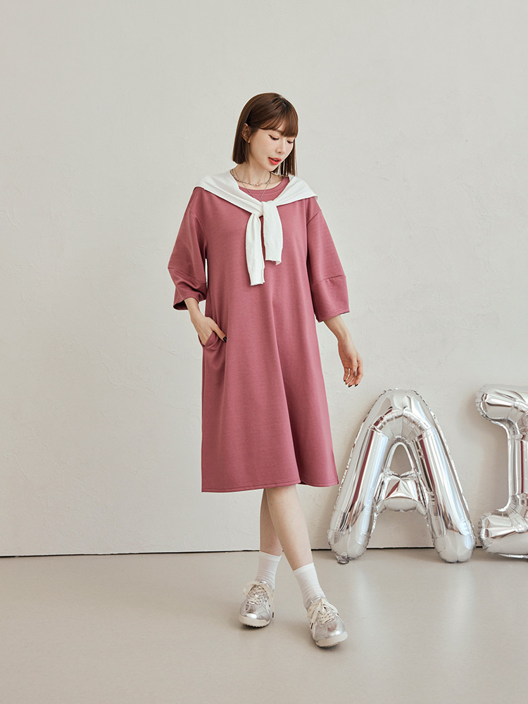 Product Feature: โ Crafted from breathable space cotton blend. โ Flattering puff sleeves to subtly enhance the arms. โ Featuring functional pockets on both sides. โ Side split design to elongate the legs.