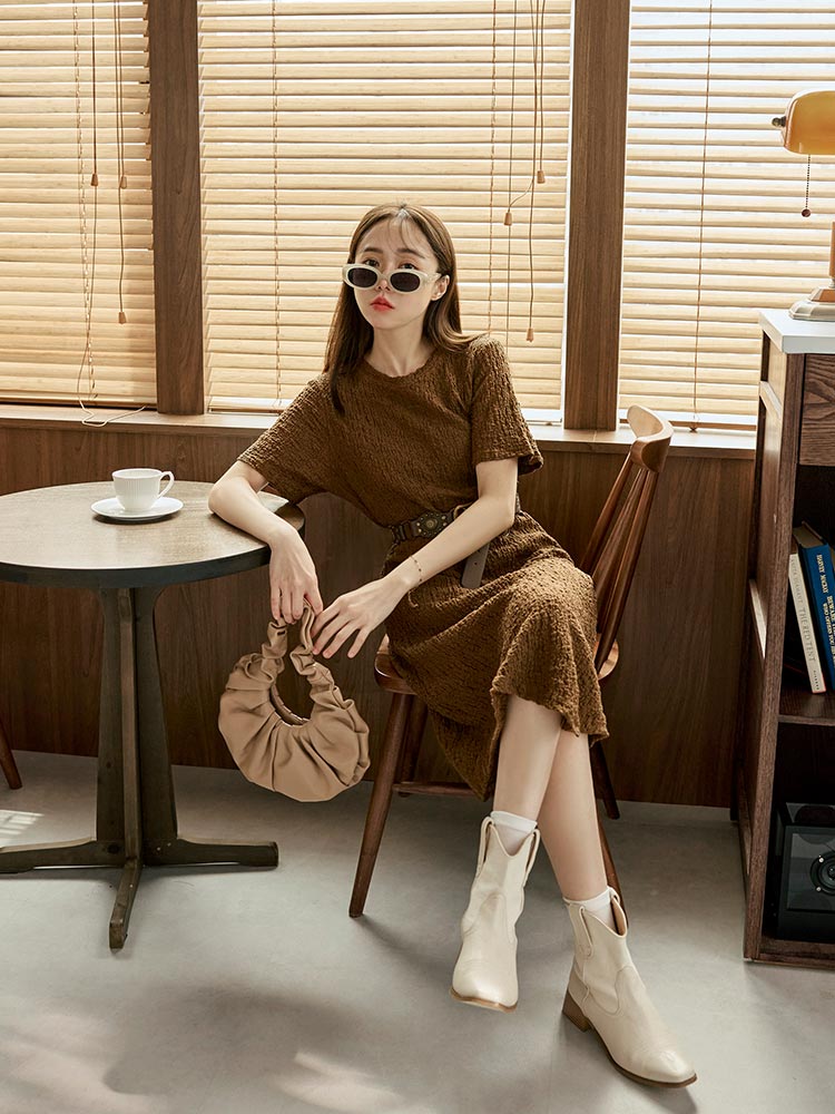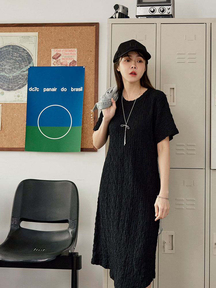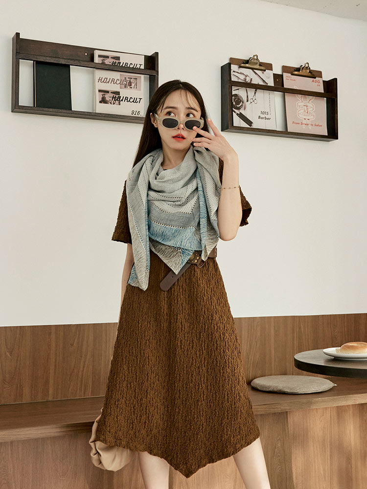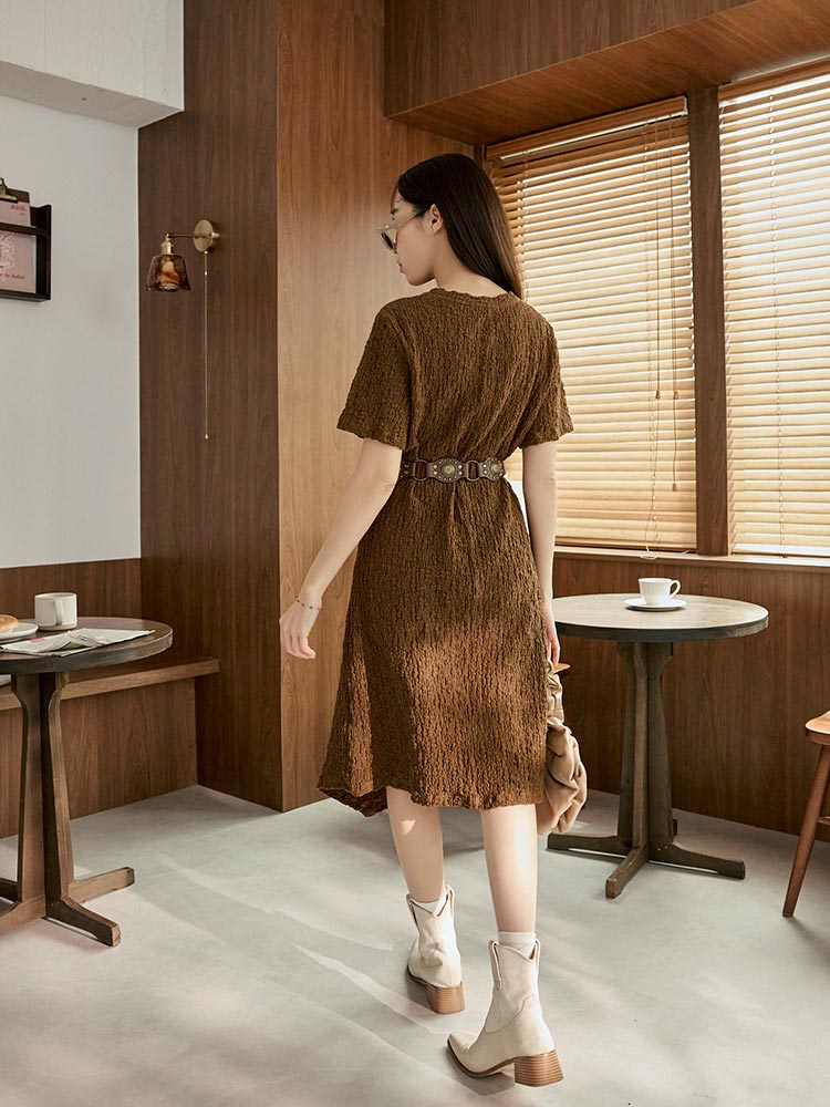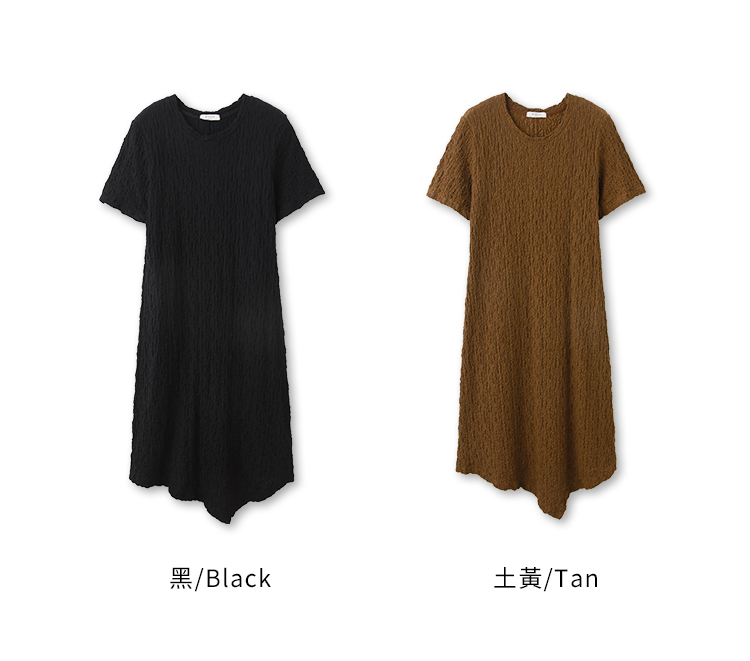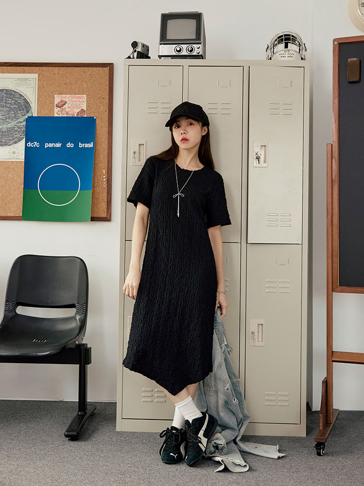 Textured Asymmetric Hemline Cotton Dress (2XL~4XL)