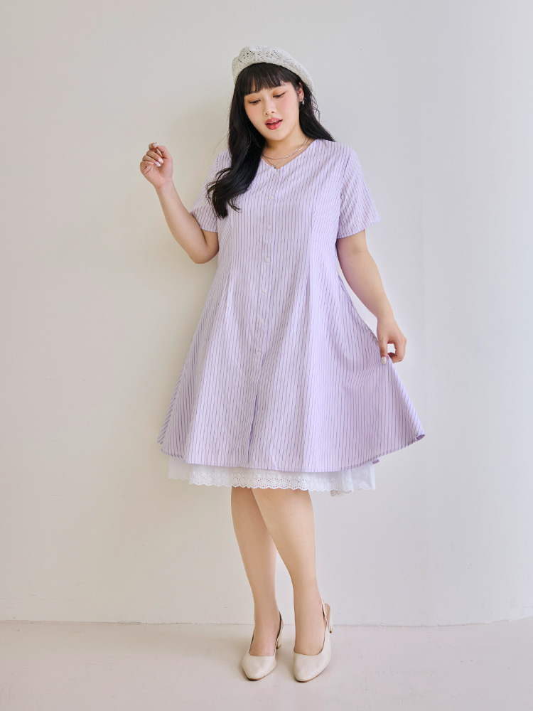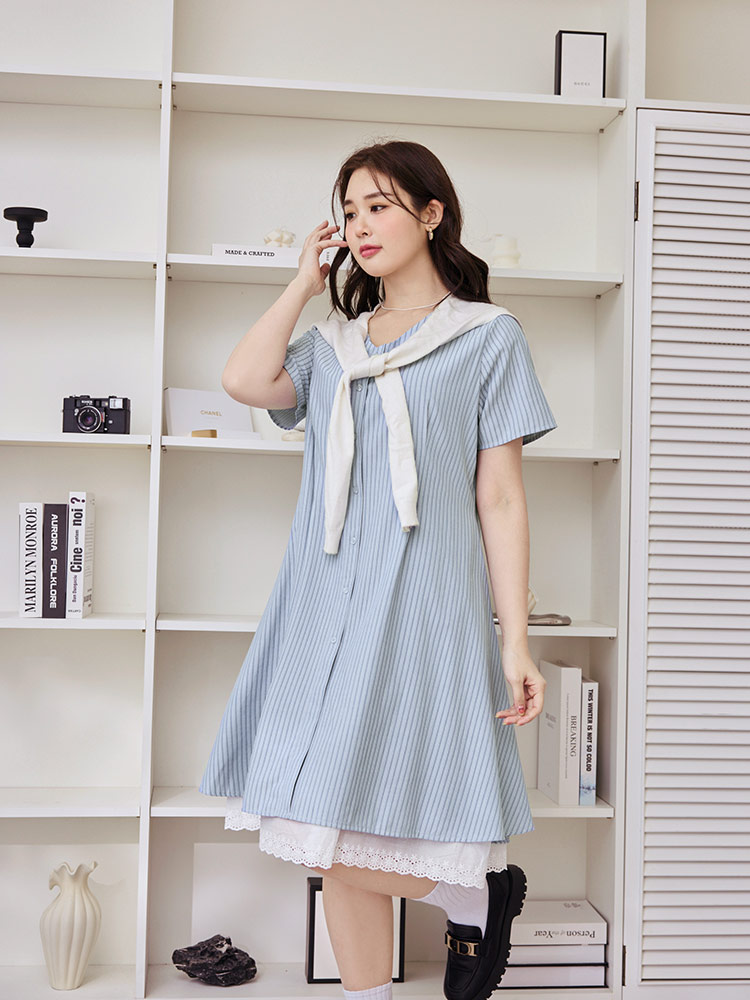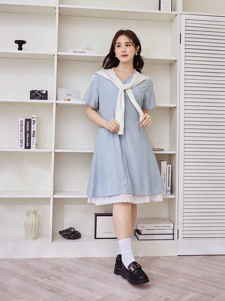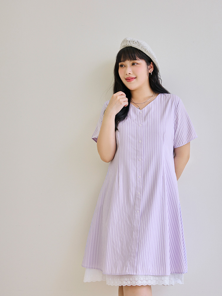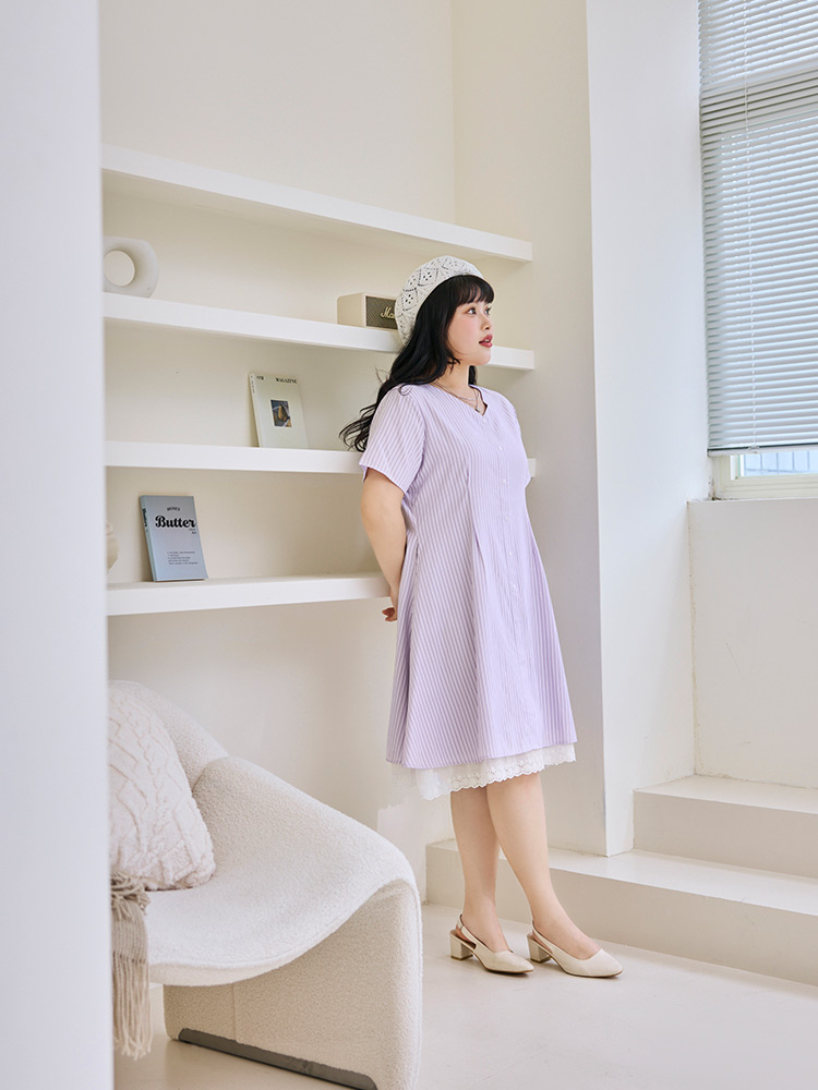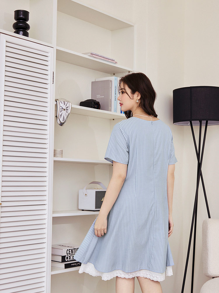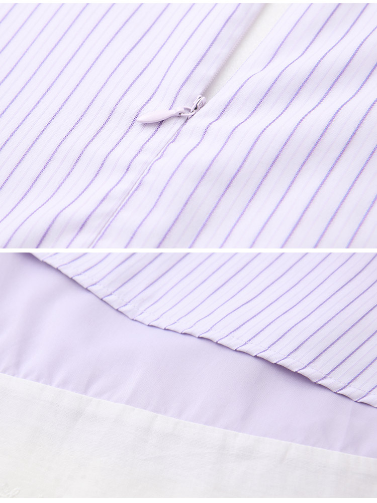 Product Feature: โ Crafted from soft, skin-friendly striped fabric. โ Features a flattering V-neckline. โ Designed with a concealed zip at the back. โ Includes functional side pockets.