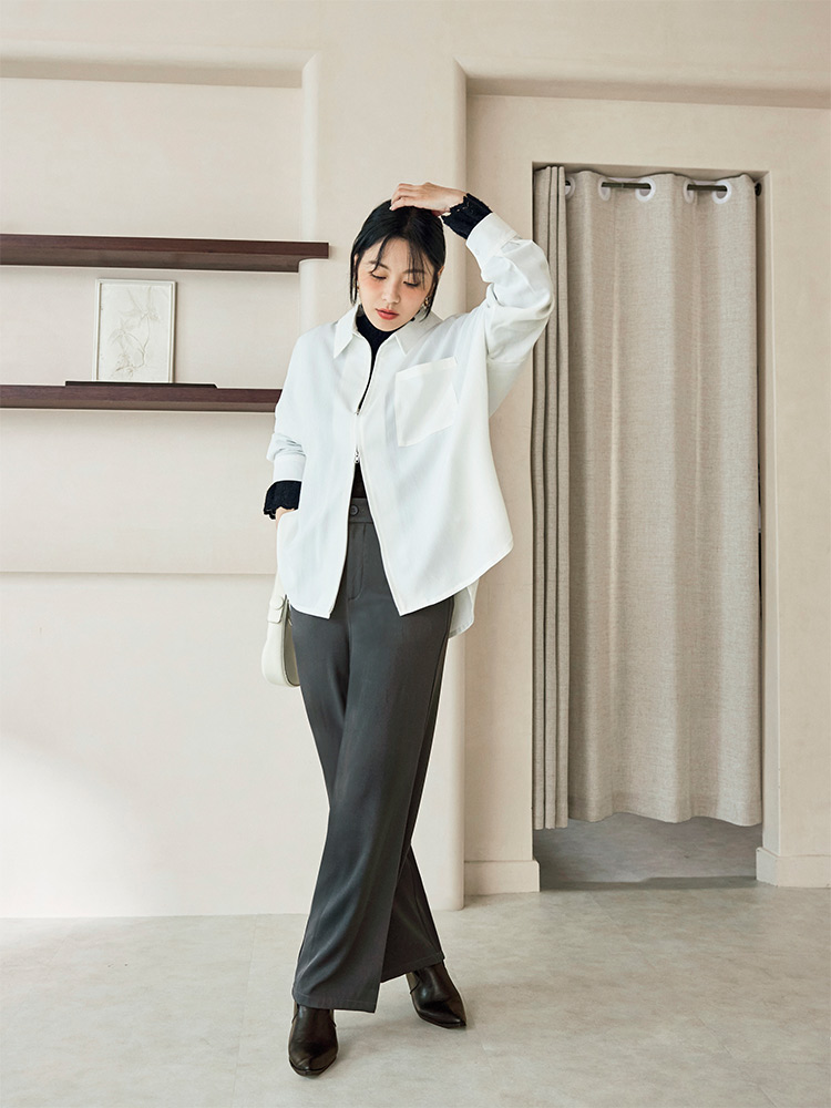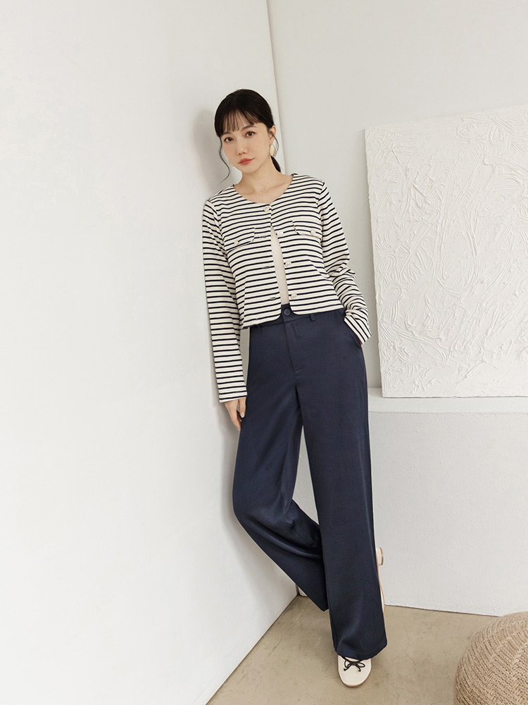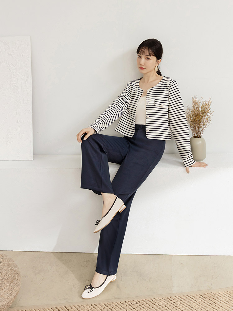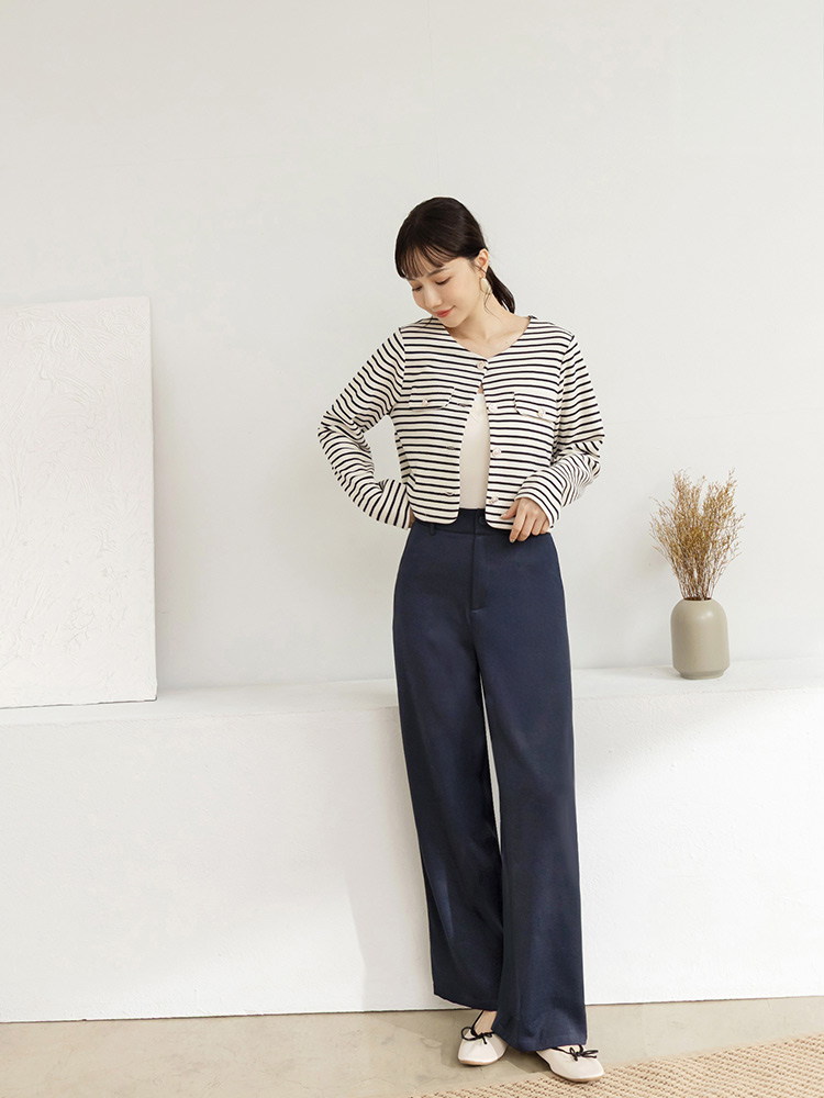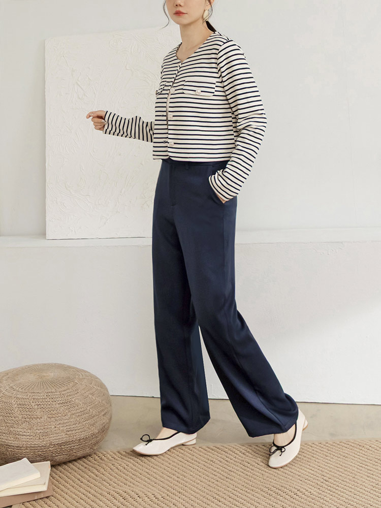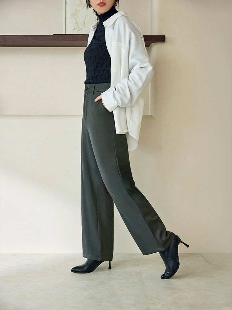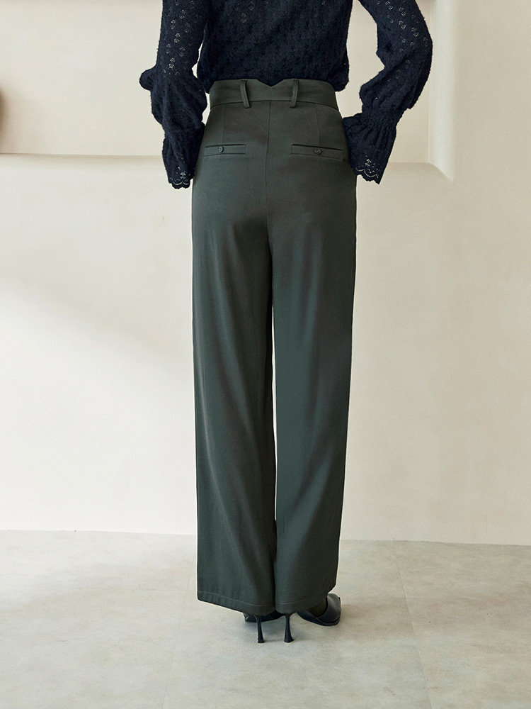 Product Feature: โ Crafted from smooth, refined suiting fabric โ Classic straight leg cut for a flattering silhouette โ Features a stylish V-shaped waistband at the back โ Designed with functional front pockets and faux back pockets