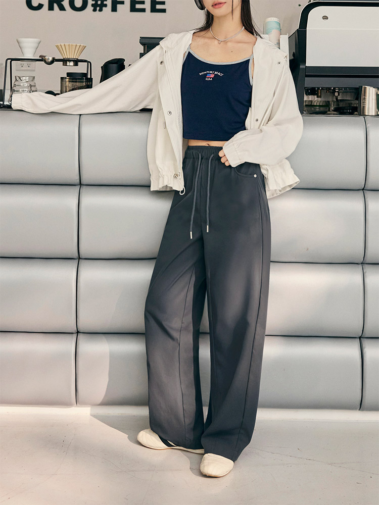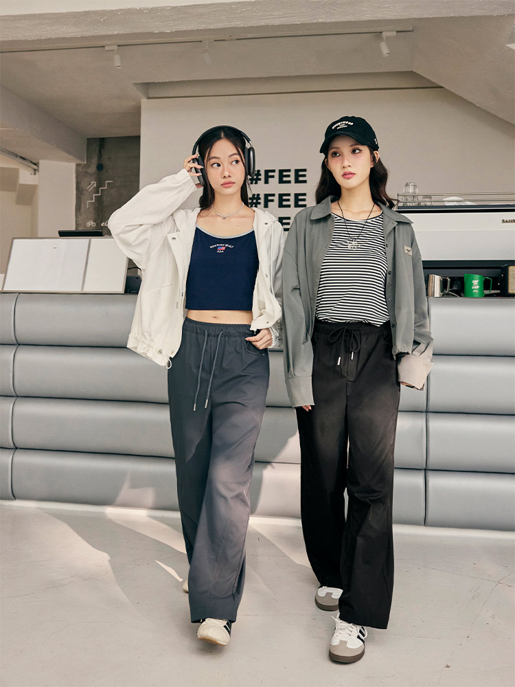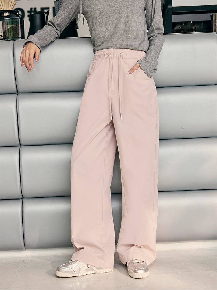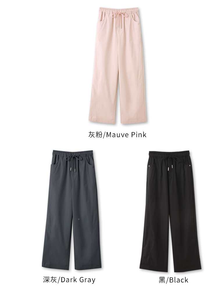 Product Feature: โ Features a comfortable elasticated waistband with adjustable drawstring. โ Designed with functional pockets. โ Relaxed straight-leg cut for a flattering silhouette.