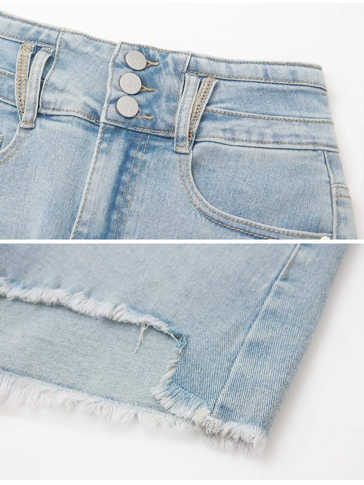 Product Feature: โ Crafted from soft, skin-friendly cotton denim โ Features a flattering high-waisted design โ A-line wide-leg cut to shape your legs โ Classic button-up closure with functional front and back pockets