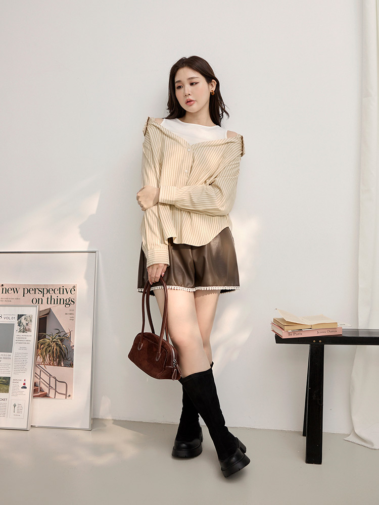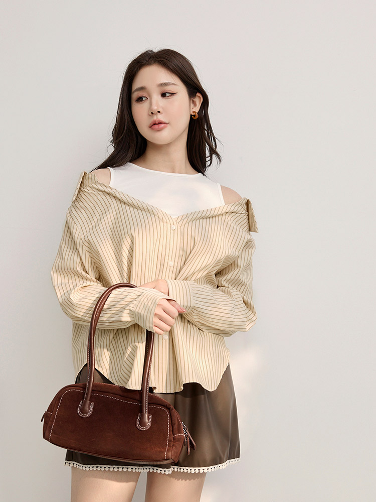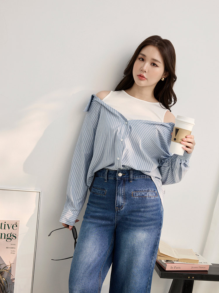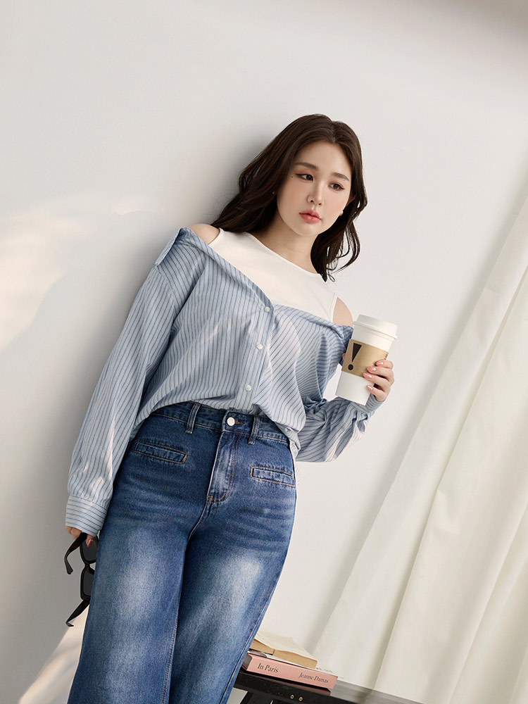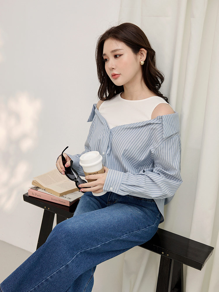 Product Feature: โ Features a flattering cold shoulder design. โ Crafted from a soft, skin-friendly cotton blend. โ Stylish two-piece design. โ Front buttons and sleeve cuffs are openable.