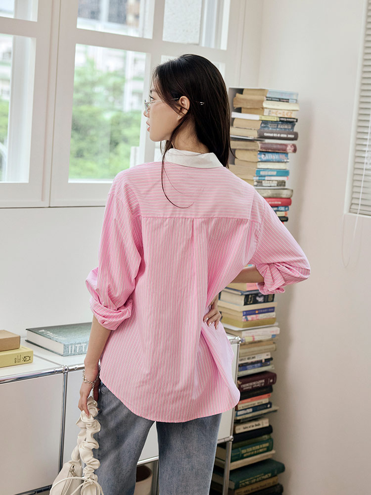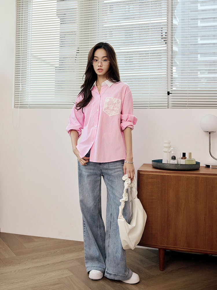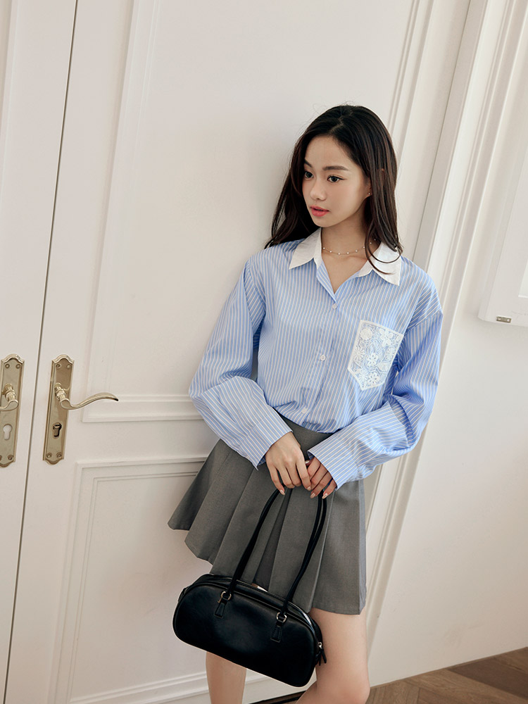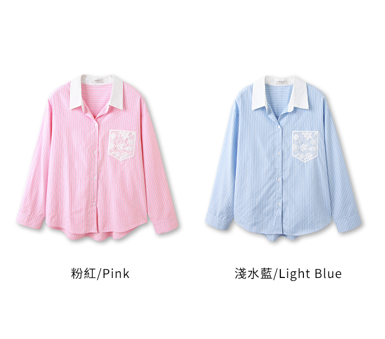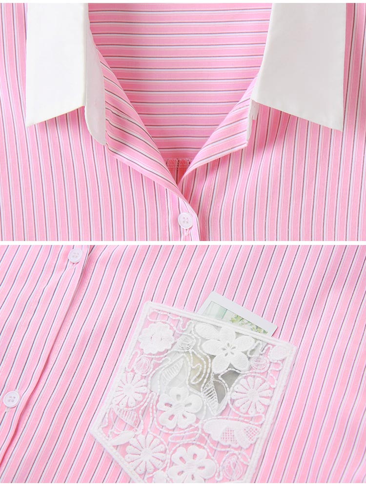 Lace Pocket Stripe Blouse (2XL~3XL)