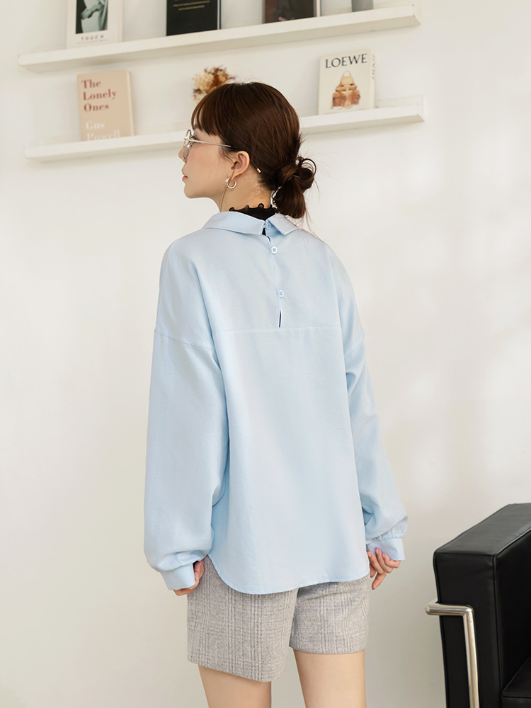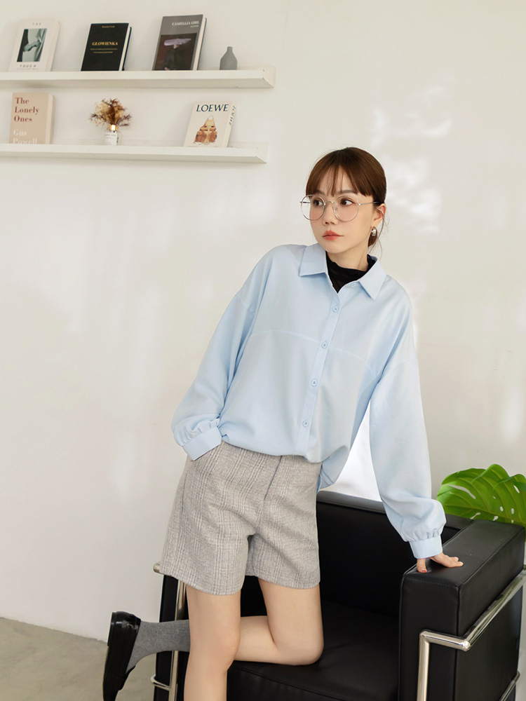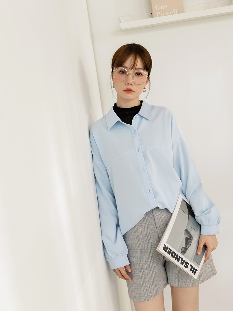 Pure Colour Button-Up Blouse
