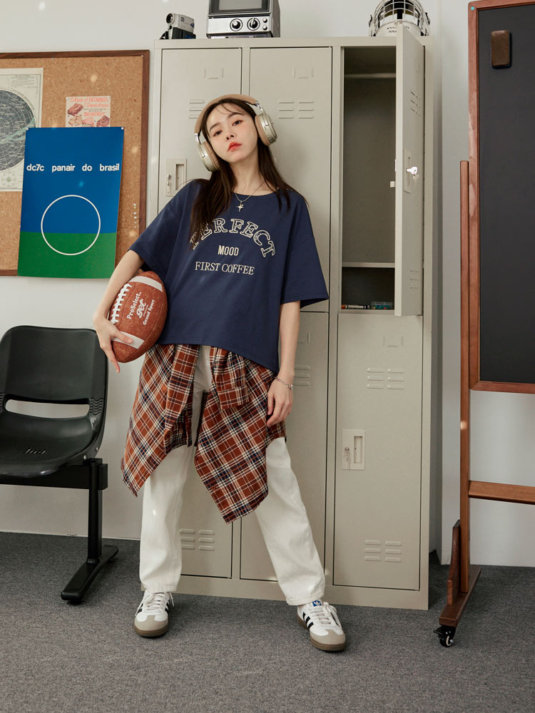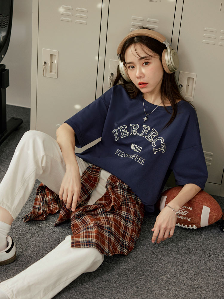 Product Feature: โ Crafted from wrinkle-resistant space cotton. โ Features delicate embroidered lettering. โ Designed with a relaxed fit for all-day comfort.