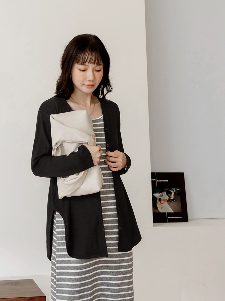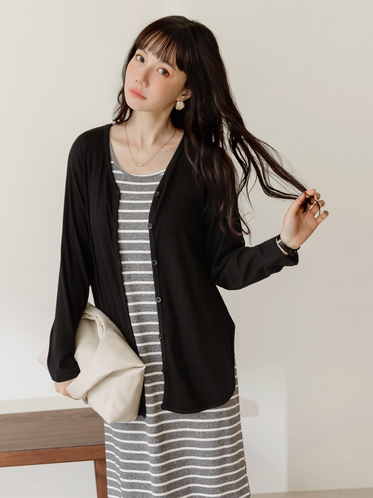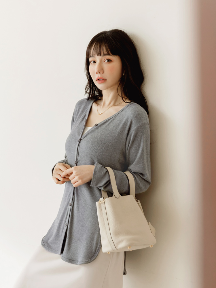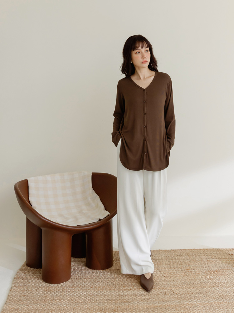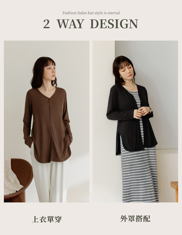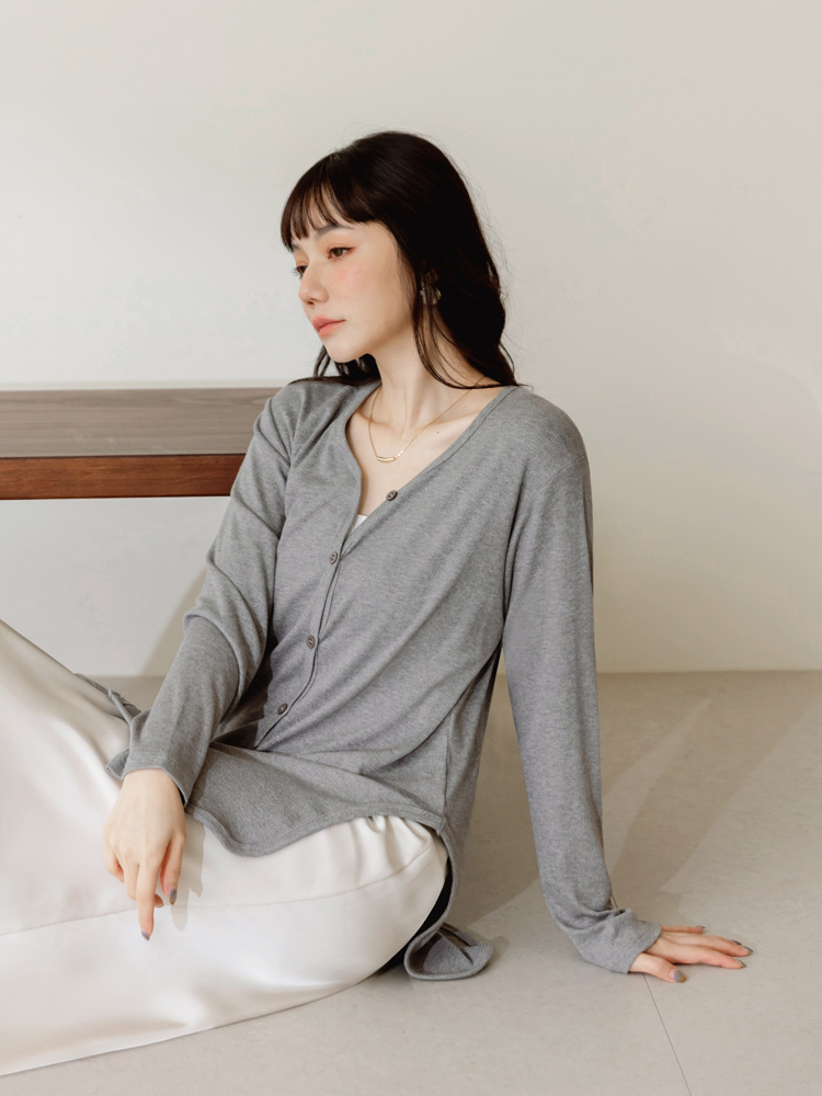 Product Feature: โ Features a flattering V-neckline. โ Crafted from soft, stretchy knit fabric for all-day comfort. โ Stylish side split hem for a beautiful silhouette. โ Button-up design, perfect as a top or layering piece.