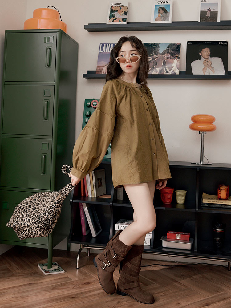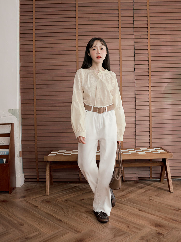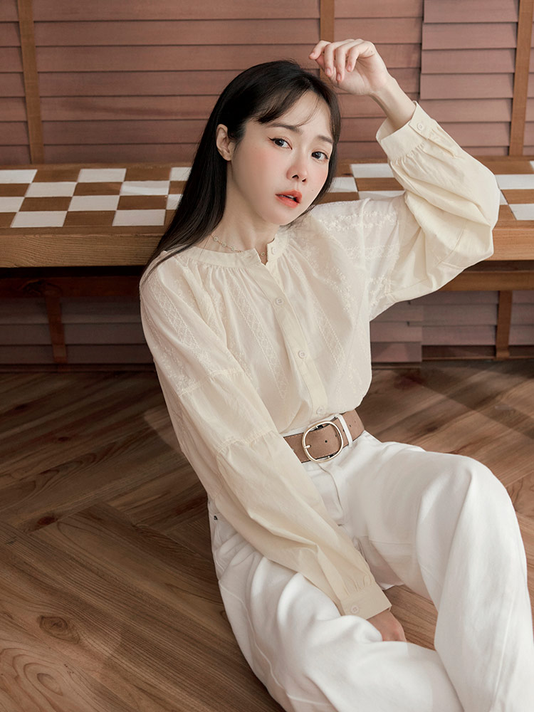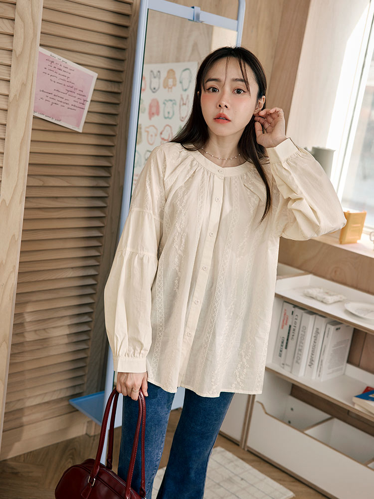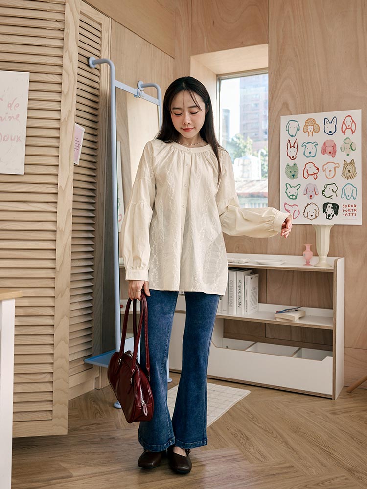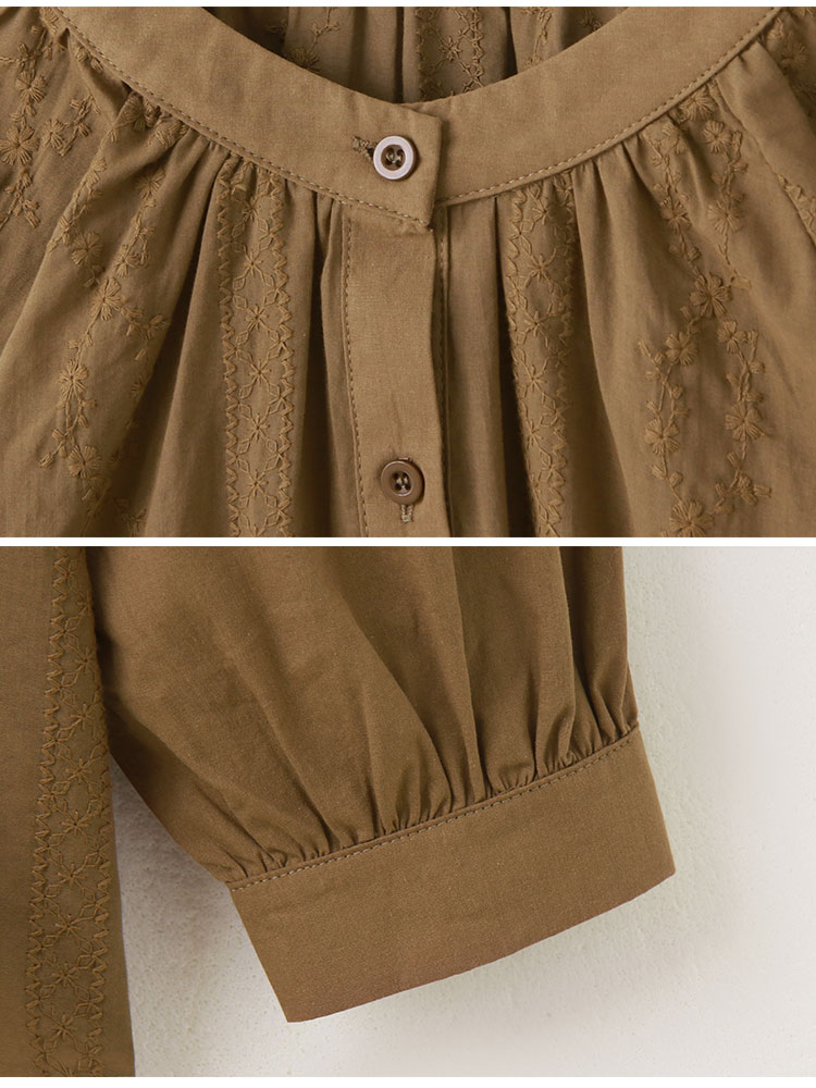 Product Feature: โ Crafted from breathable, lightweight embroidered cotton โ Features a flattering puff sleeve design โ Open front with functional buttons โ Can be worn alone or as a layering piece