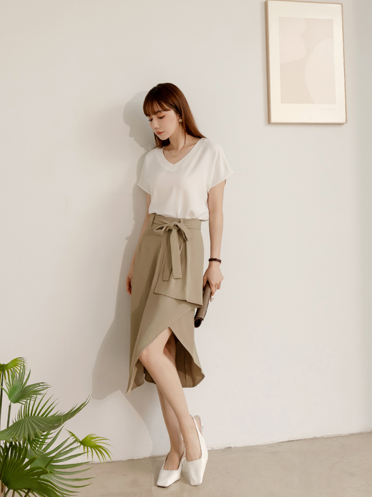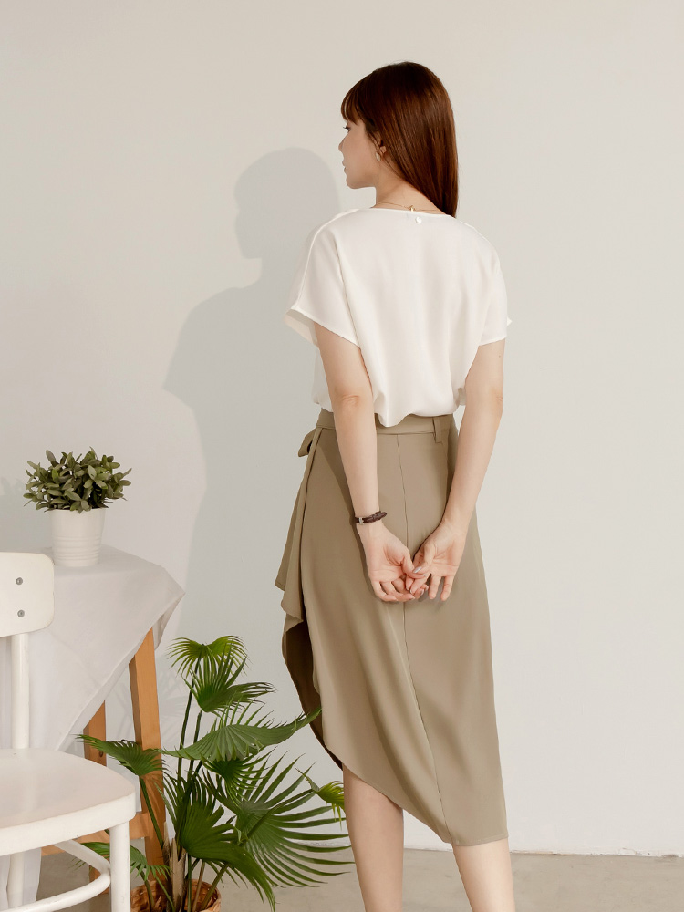Product Feature: โ Features a flattering asymmetrical hemline โ Includes a detachable and adjustable belt for a custom fit โ Crafted from wrinkle-resistant fabric for easy care โ Designed with a playful ruffle hem