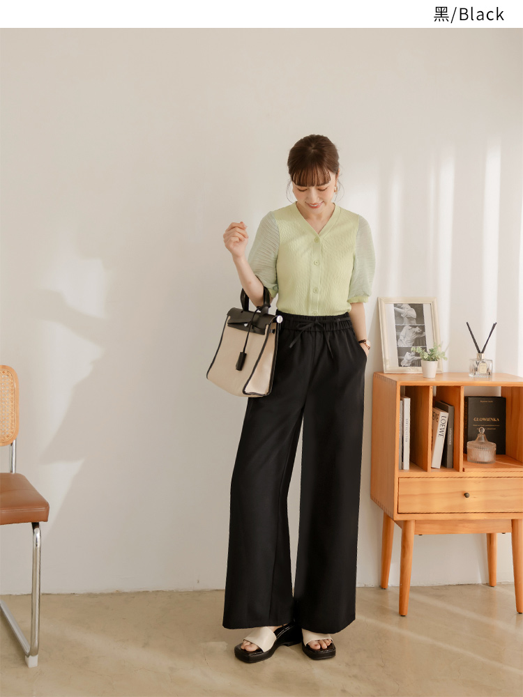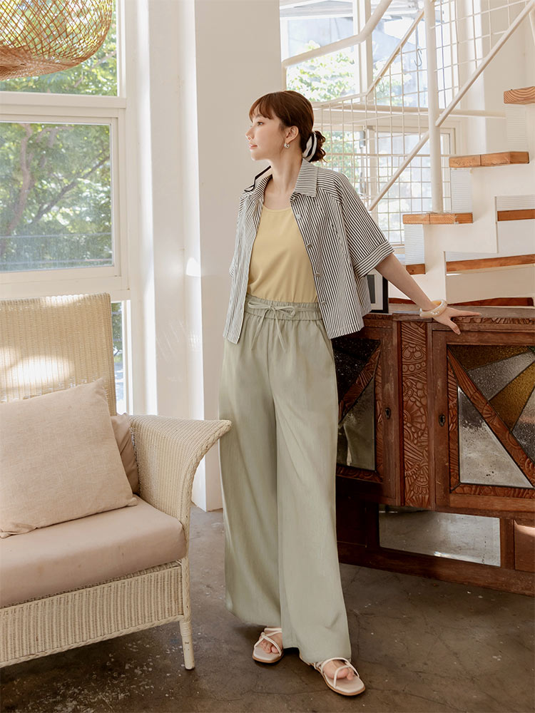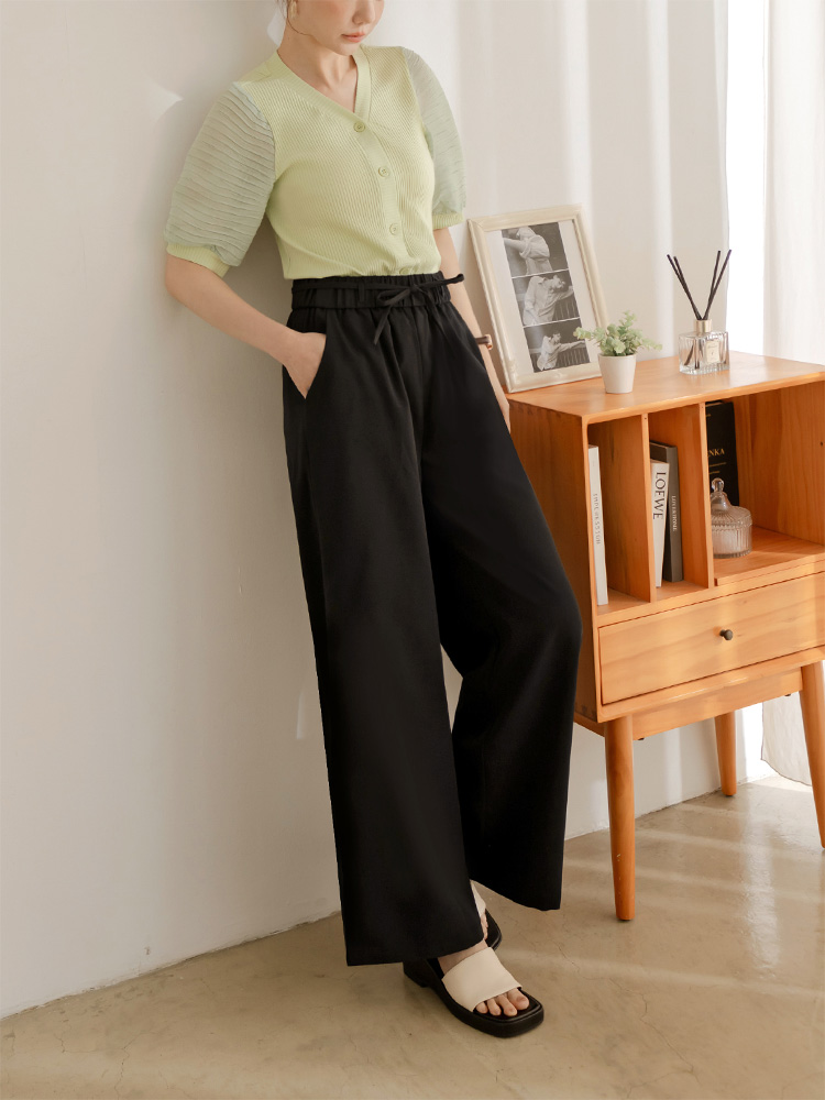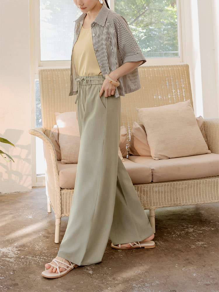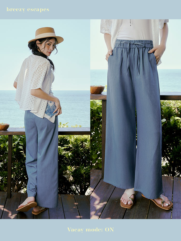 Product Feature: โ Crafted from a wrinkle-resistant blend for easy care. โ Features a comfortable, elasticated waistband. โ Designed with a flattering wide-leg fit. โ Adjustable tie-waist detail.