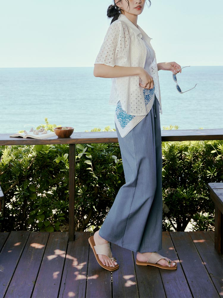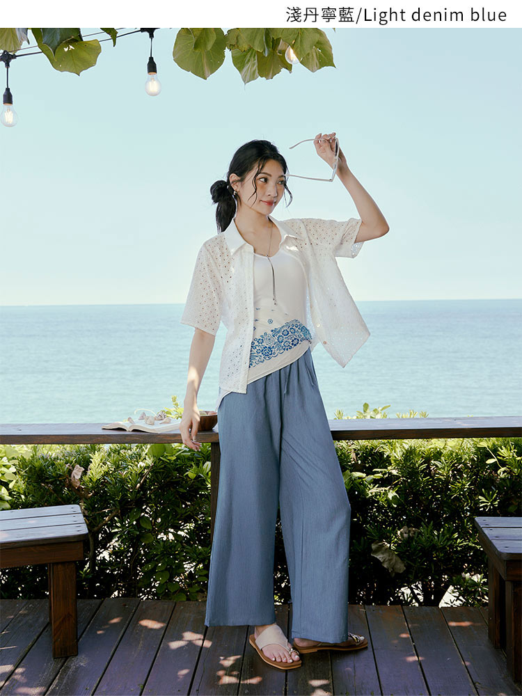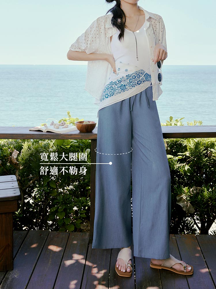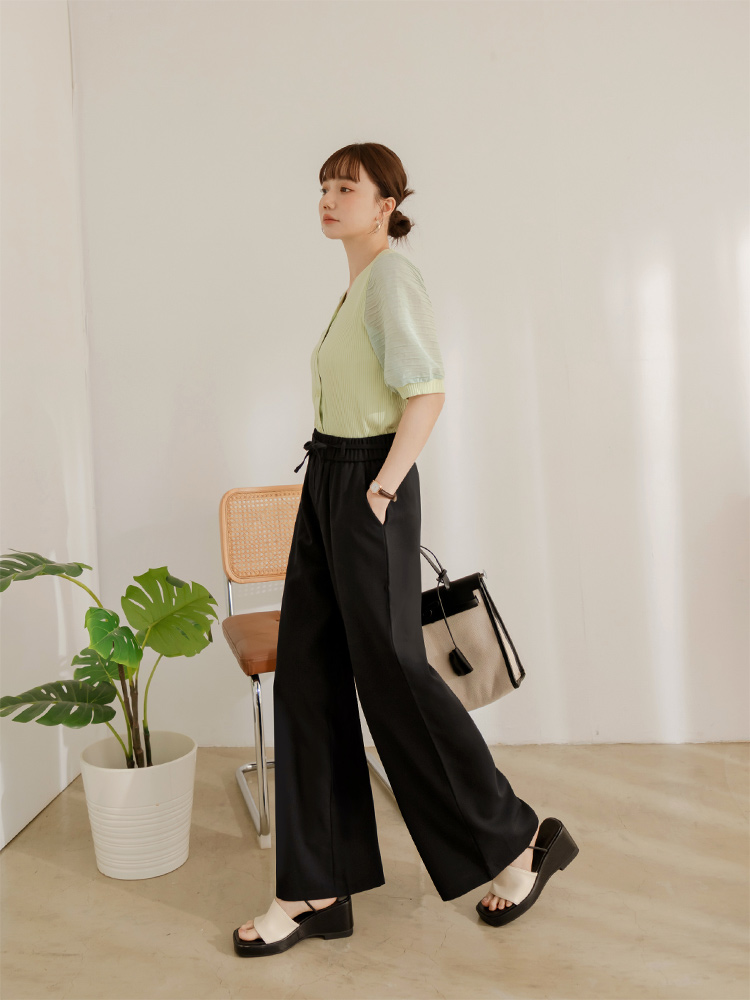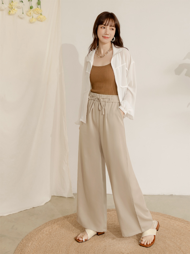 Product Feature: โ Crafted from a wrinkle-resistant blend for easy care. โ Features a comfortable, elasticated waistband. โ Designed with a flattering wide-leg fit. โ Adjustable tie-waist detail.