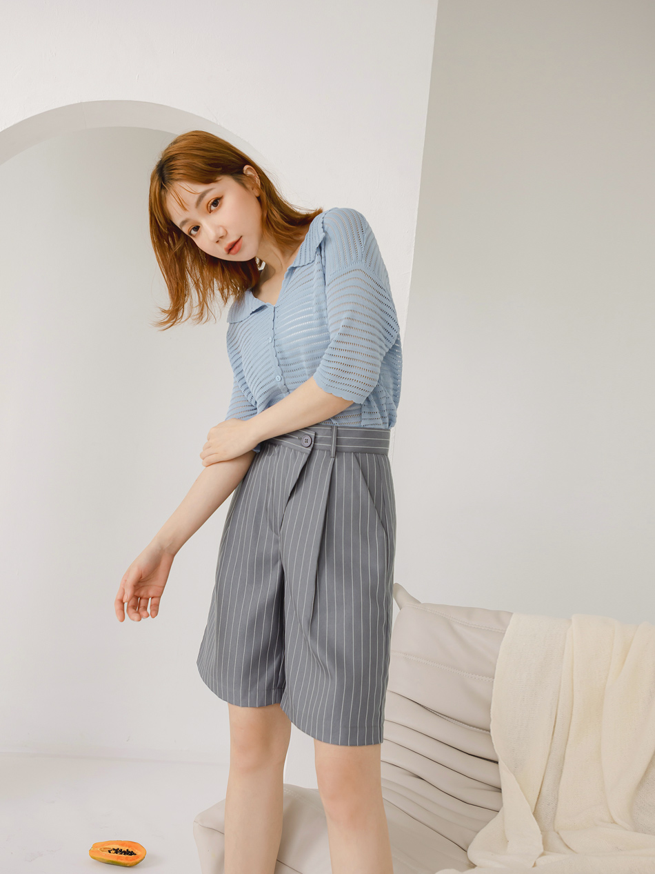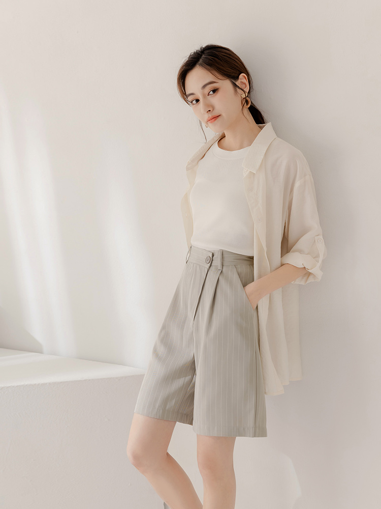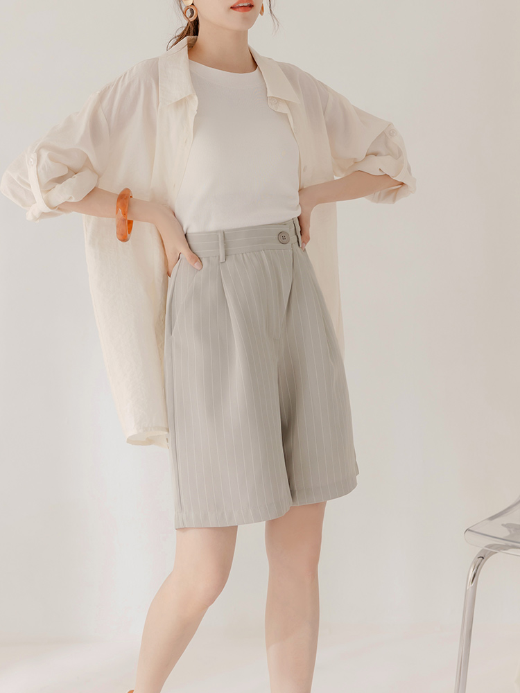 Striped Pleat-Front Suit Shorts (XL~3XL)