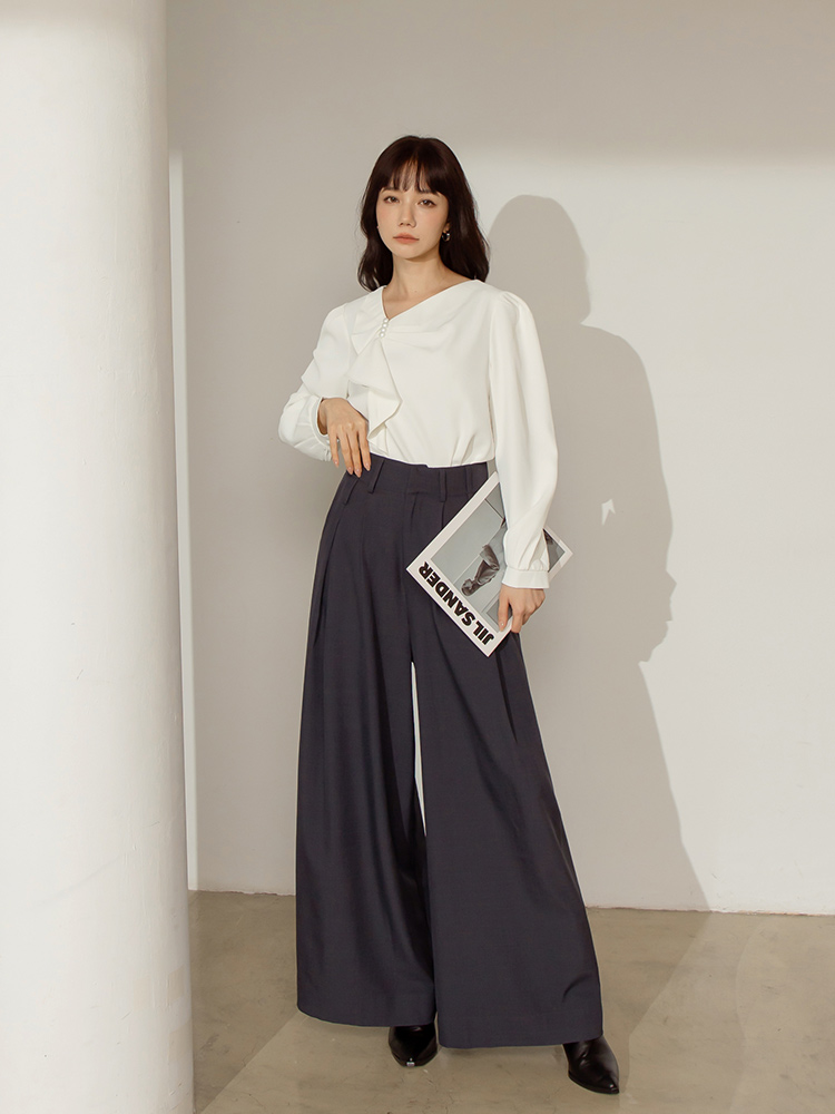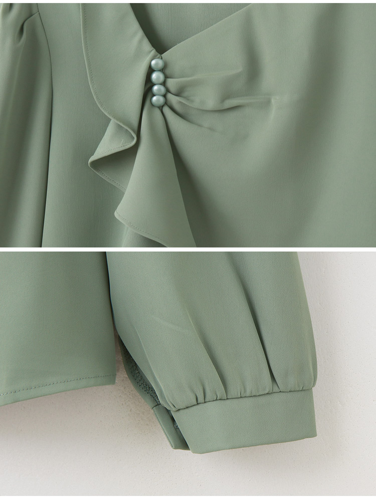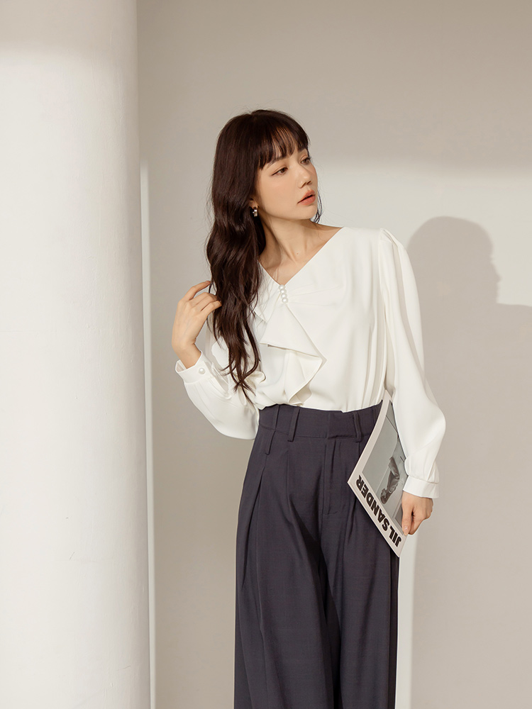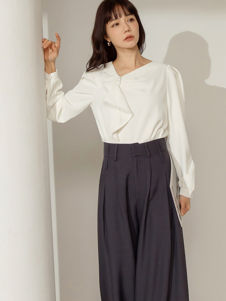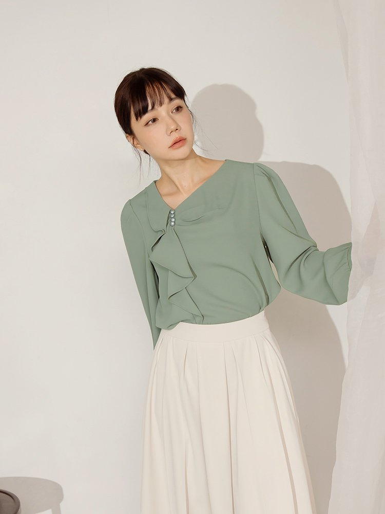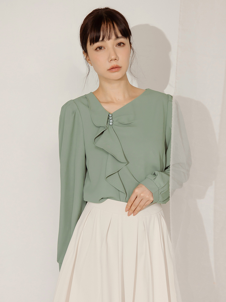 Ruffle Trim Pearl Detail Blouse