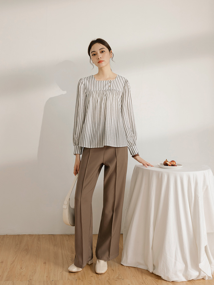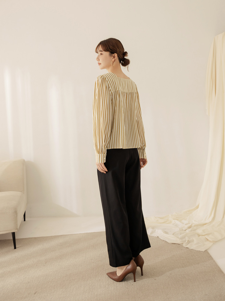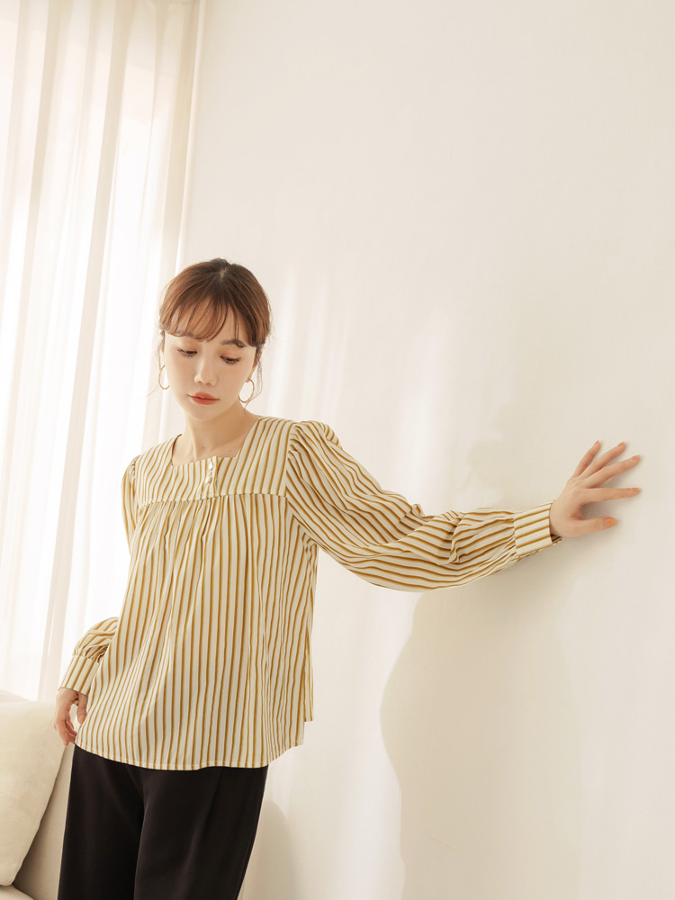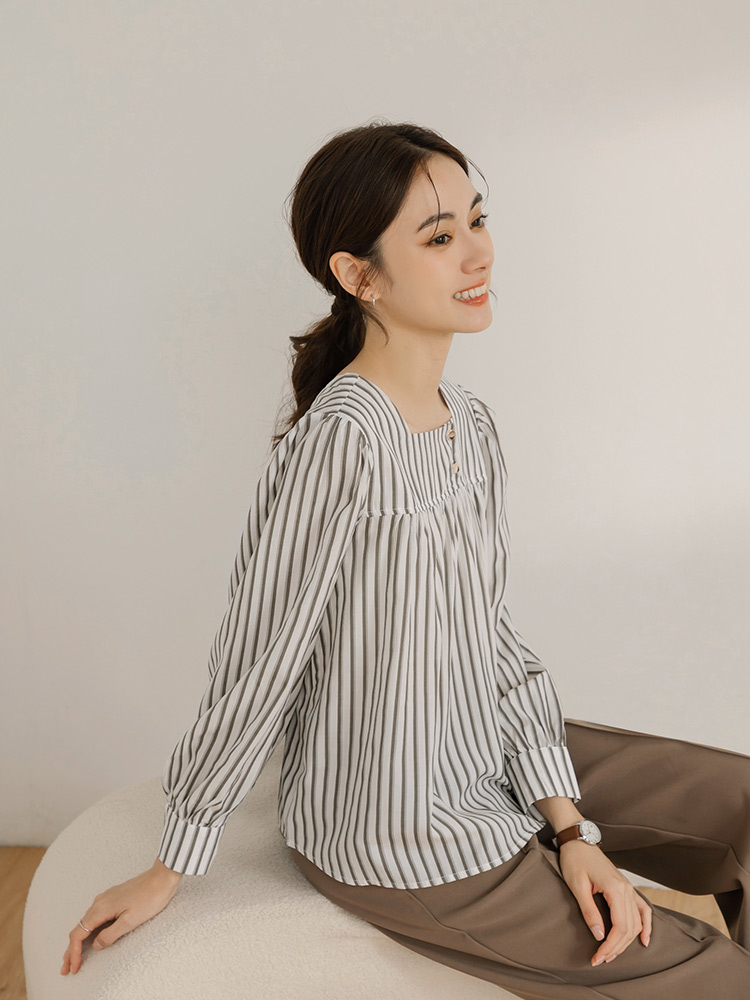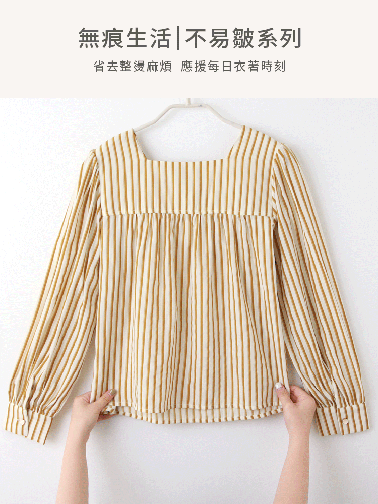 Product Feature: โ Features a flattering square neckline โ Crafted from easy-care, wrinkle-resistant fabric โ Classic striped design for a timeless look โ Long sleeves