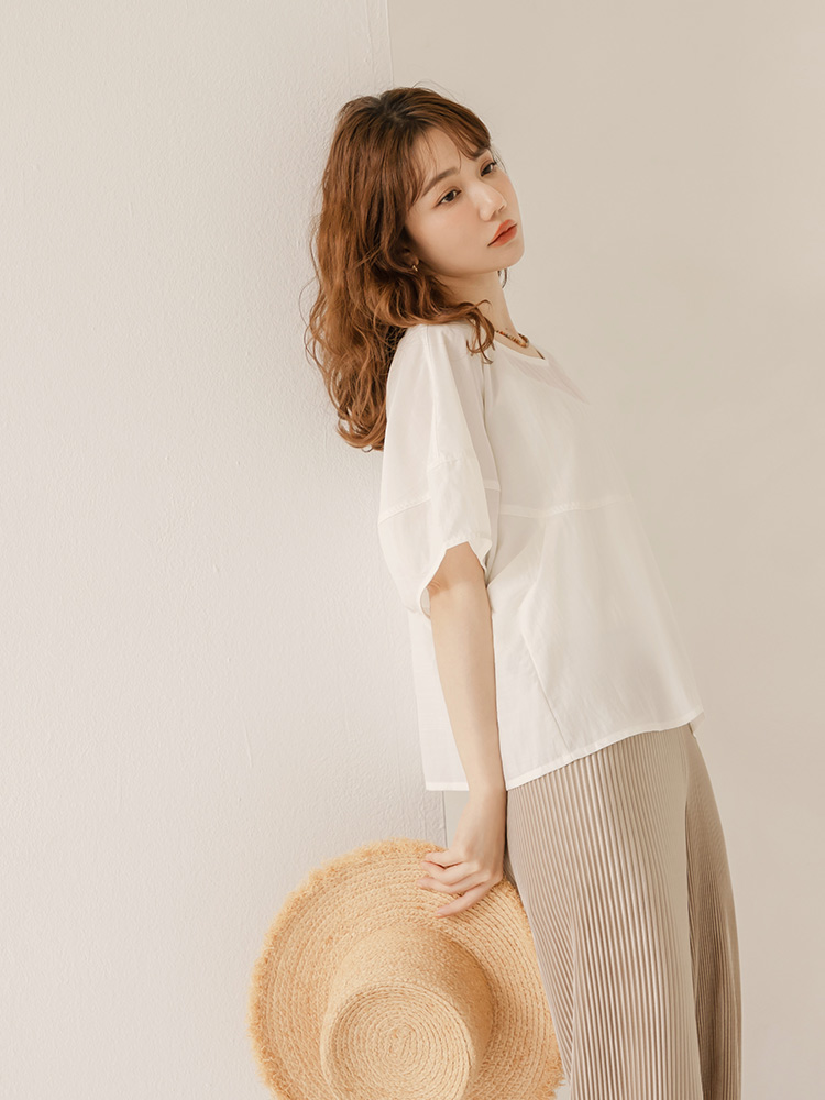 Product Feature: โ Crafted from a non-crease fabric for effortless style. โ Features flattering puff sleeves. โ Designed with a classic round neckline for comfortable wear.