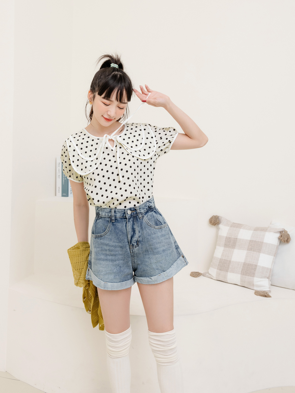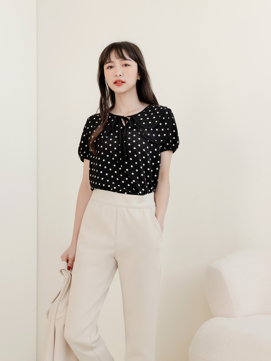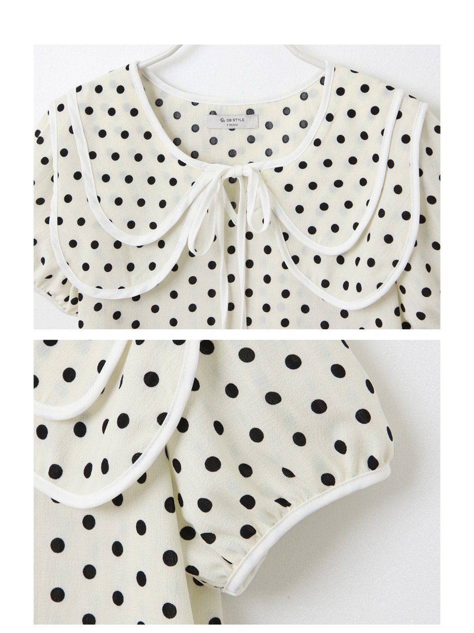 Double-Layer Collar Spot Print Blouse (XL~3XL)