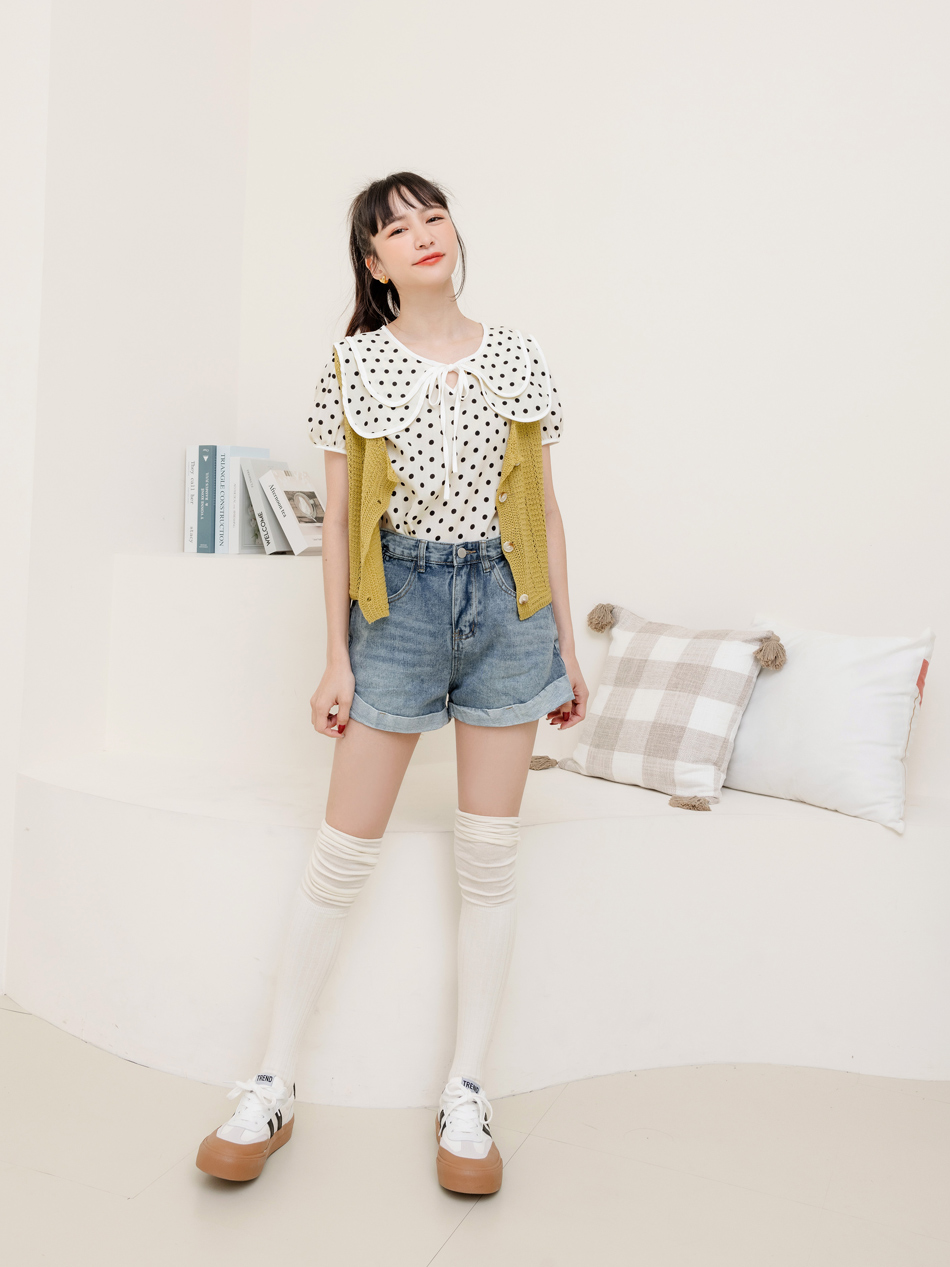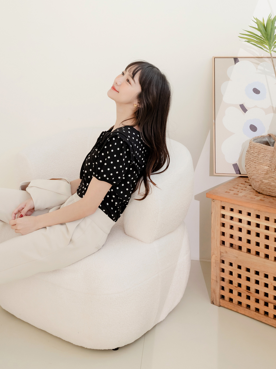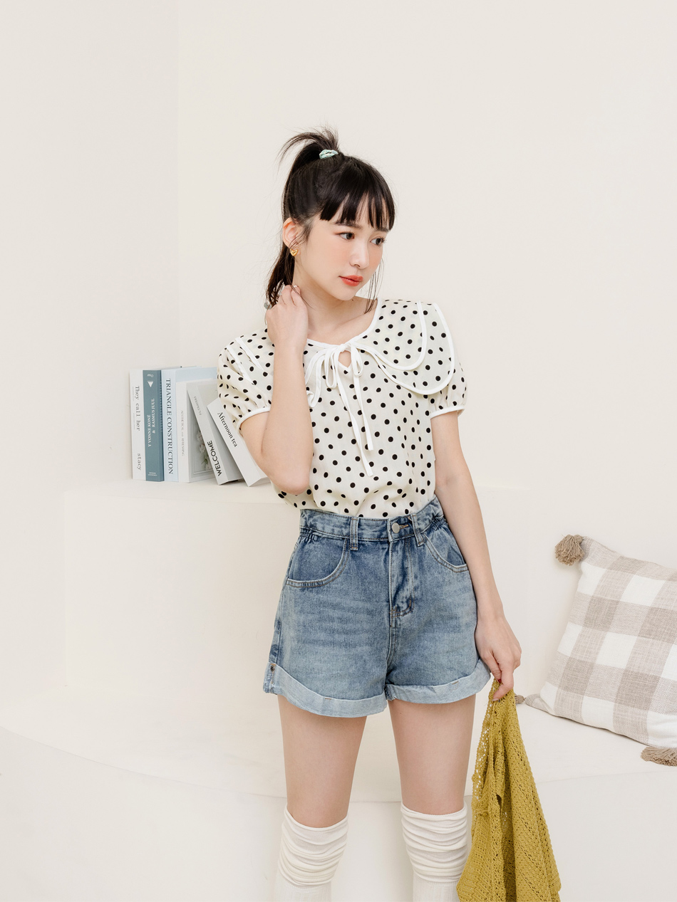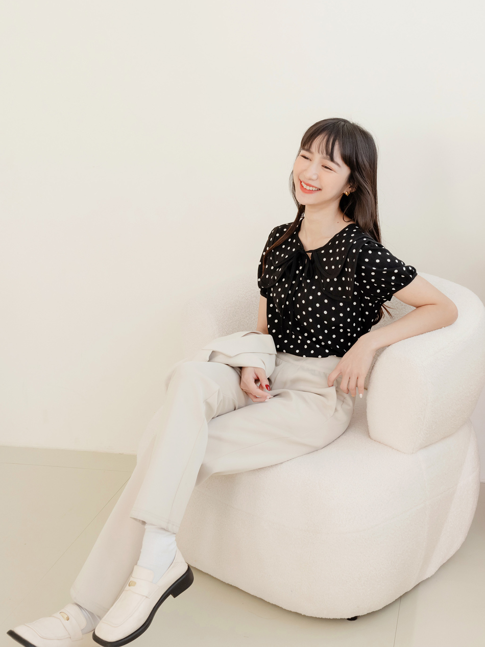 Double-Layer Collar Spot Print Blouse (XL~3XL)