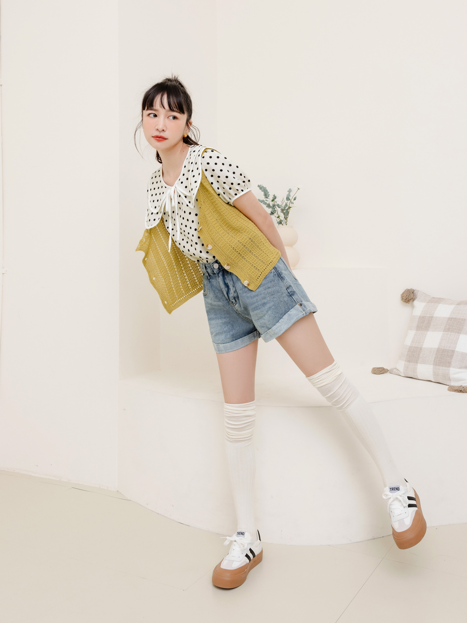 โ—† Adorned with a full-coverage spot print for a touch of vintage flair.