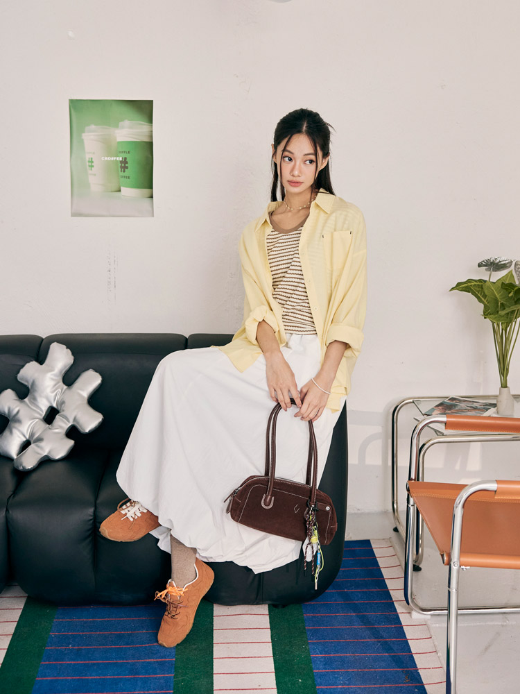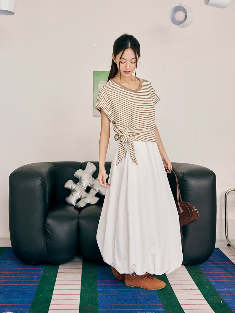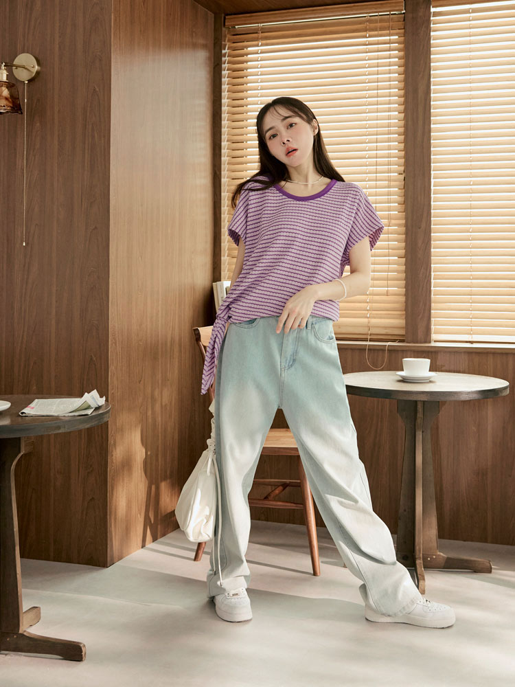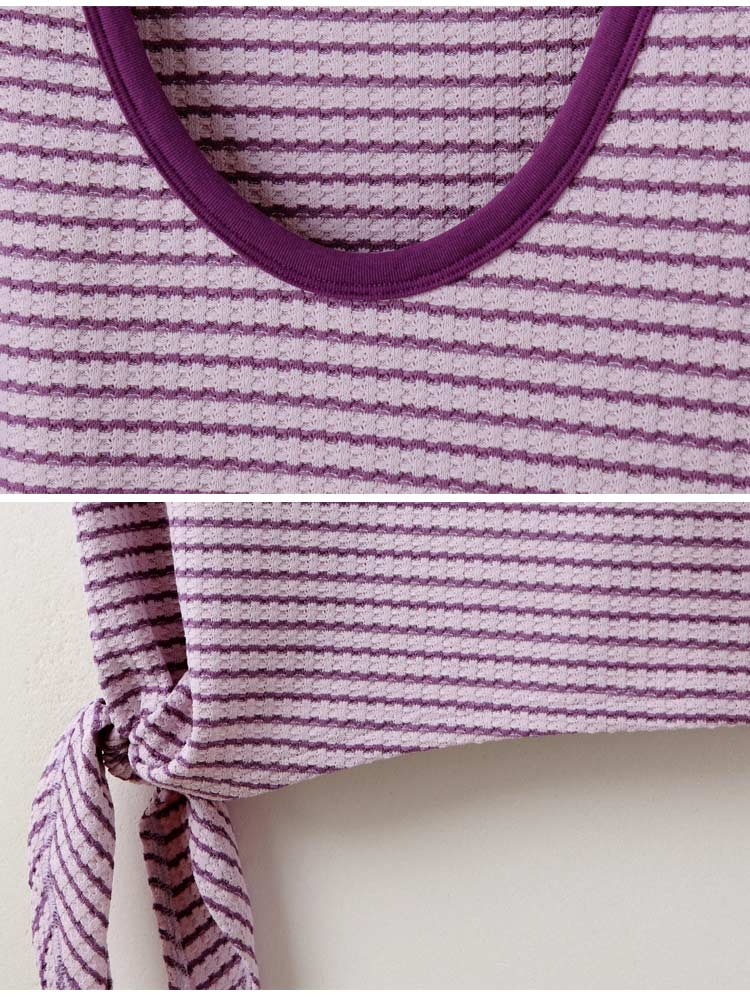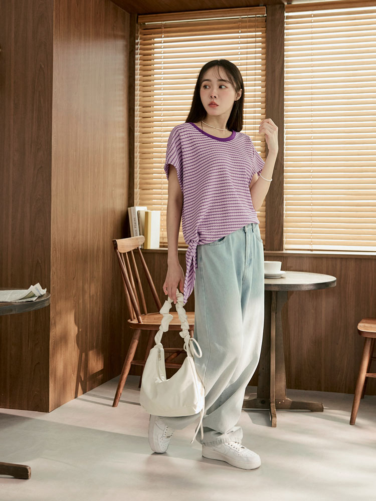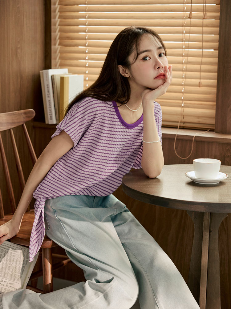 Product Feature: โ Crafted from a soft, breathable fabric. โ Features a flattering, relaxed shoulder design. โ Stylish tie-side detail. โ Designed with textured stripe.