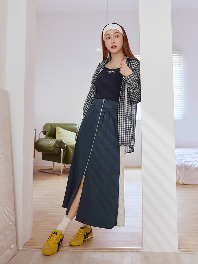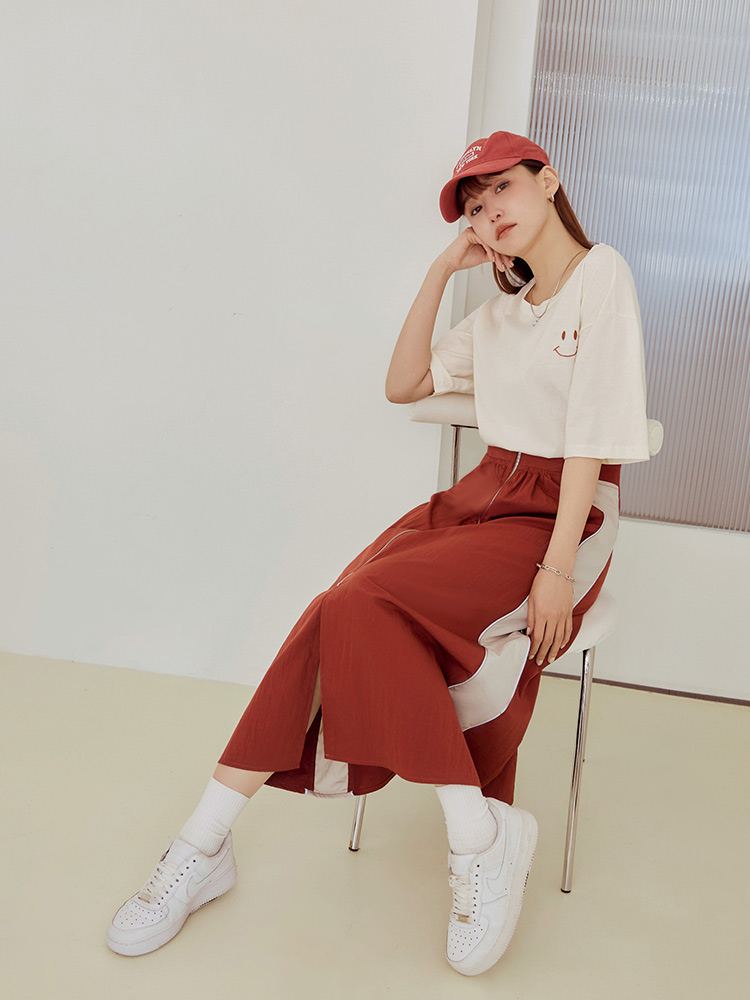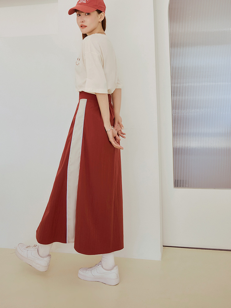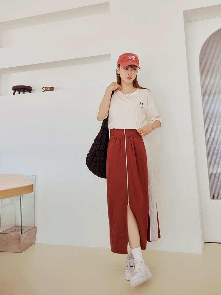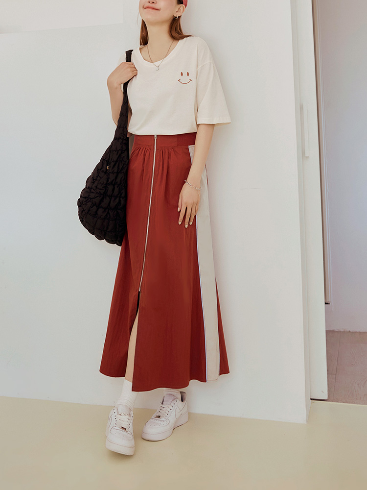 Product Feature: โ Features a flattering high-waist design with an elasticated waistband. โ Designed with a front slit to elongate the legs. โ Stylish colour-block detailing adds a touch of flair. โ Comes with a functional zip closure.