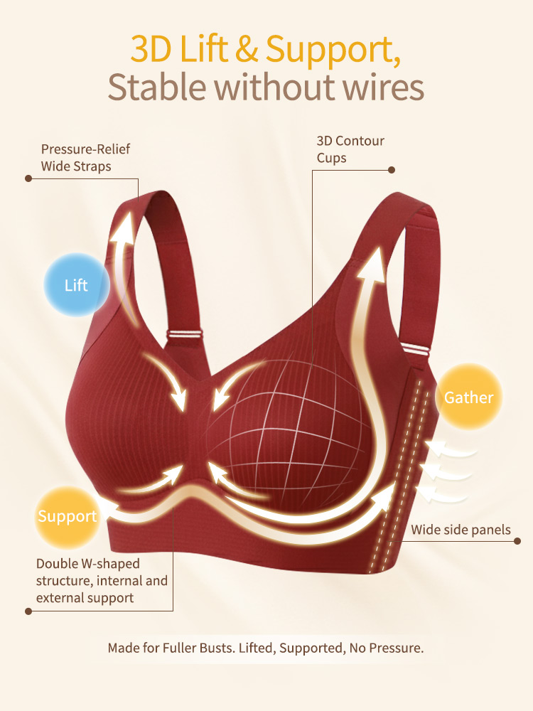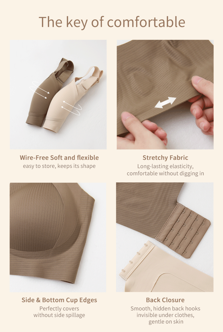 Product Feature: โ Made with high-density, elastic yarn for comfortable support โ Features a cool, breathable fabric for all-day freshness โ Wireless design ensures a comfortable, non-restrictive fit โ 3CM wide shoulder straps for enhanced support โ Designed with a double W-shaped internal structure to stabilize the bust โ 14CM high side panels to gather side breasts โ Includes a fixed, breathable 0.2CM cotton cup with over 1000 ventilation holes