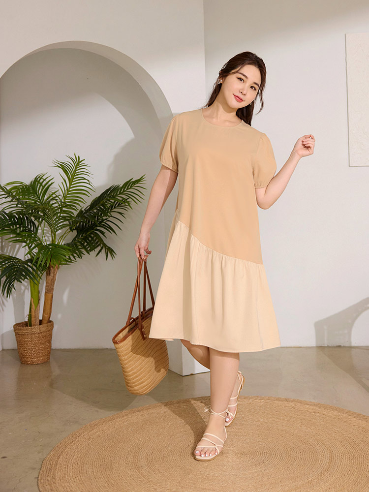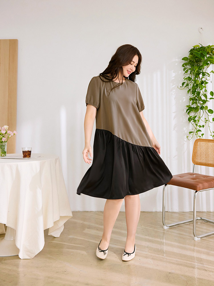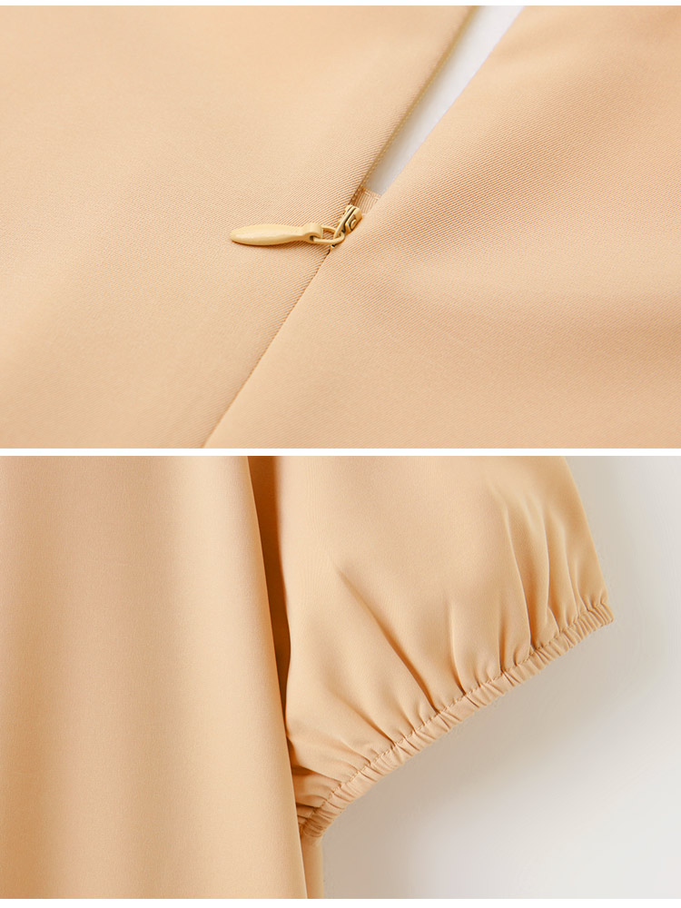 Product Feature: โ Features a colour-block design for a striking look โ Made from a smooth, quality fabric โ Short, puff sleeves for added style โ Concealed back zip for ease of wear โ Elasticated cuffs