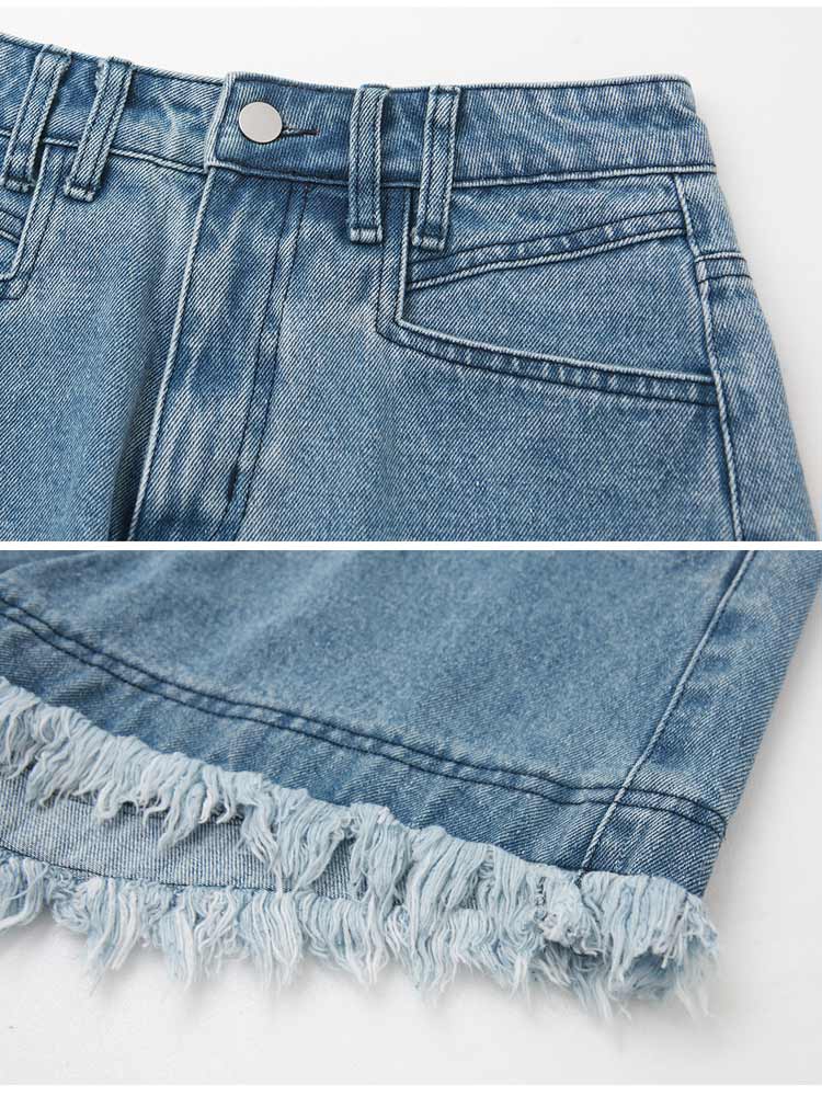 โ—† A-line, frayed hem for a flattering fit