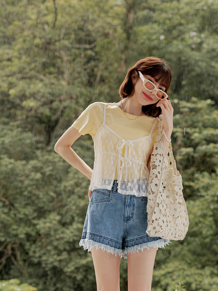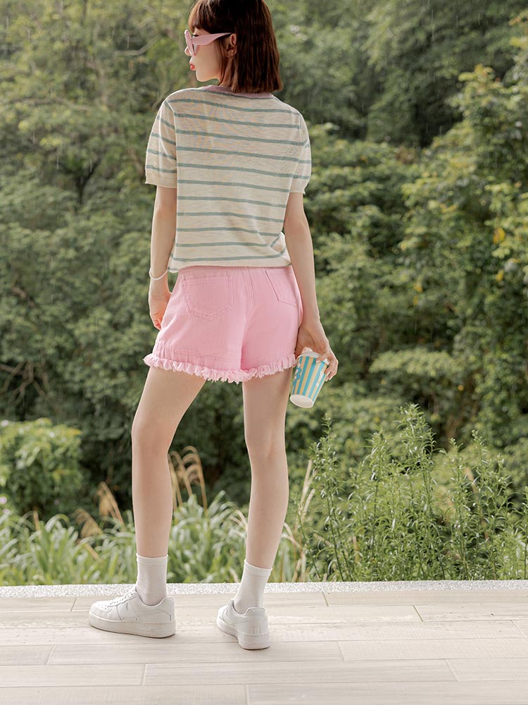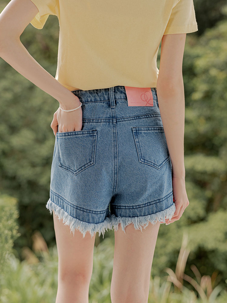 Cotton Frayed Denim Shorts (2XL~3XL)