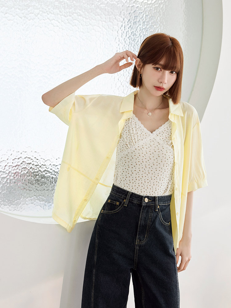 Product Feature: โ Crafted from a lightweight, skin-friendly fabric for ultimate comfort. โ Features a classic button-up front. โ Designed with a relaxed fit for easy layering. โ Versatile design, perfect to wear on its own or as a cover-up.