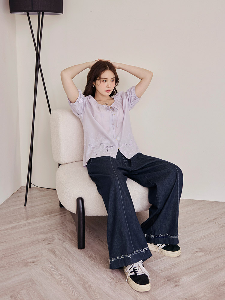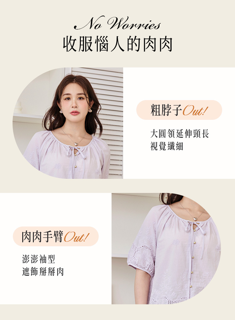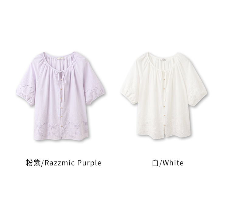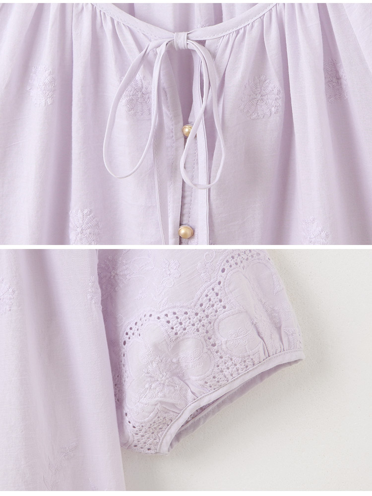 Product Feature: โ Crafted from soft, breathable cotton with delicate embroidery. โ Features a flattering puff sleeve design. โ Includes a tie detail. โ Designed with buttoned front.