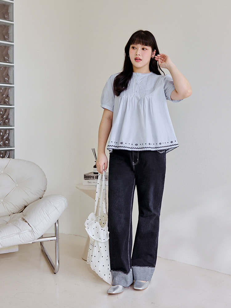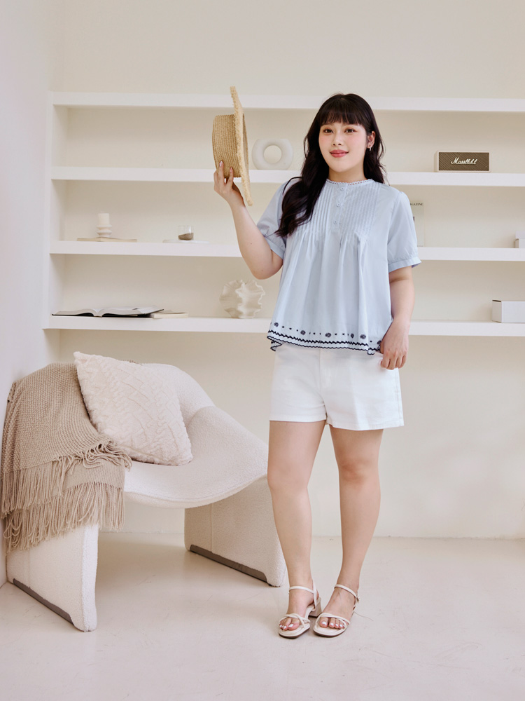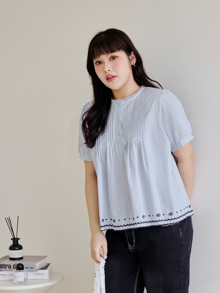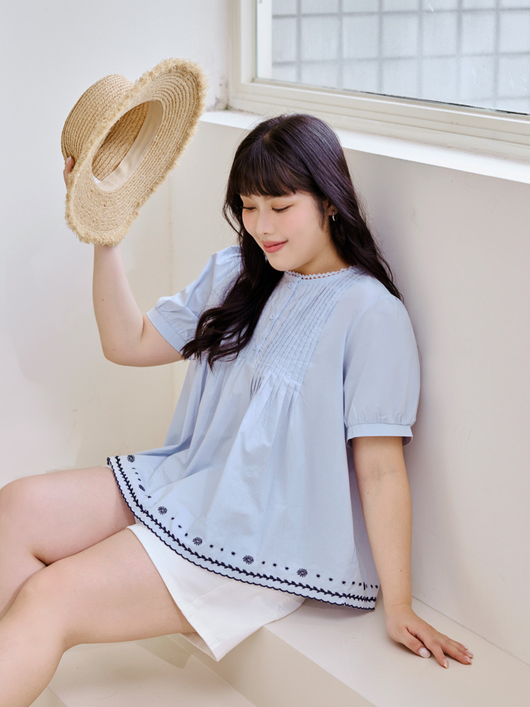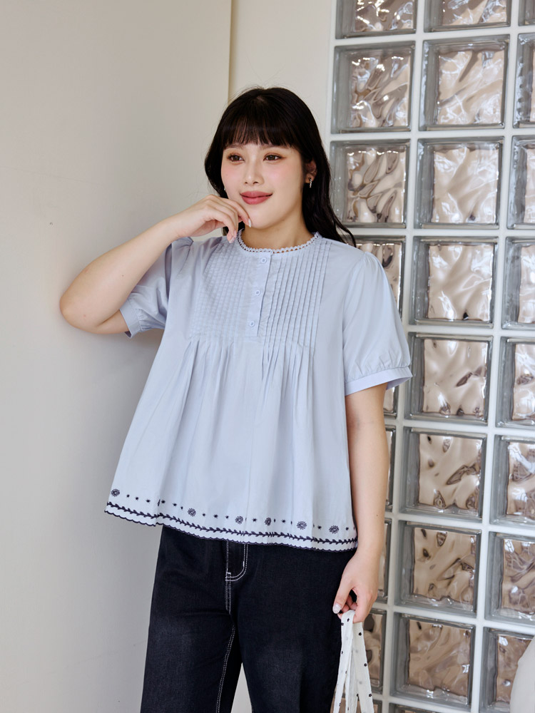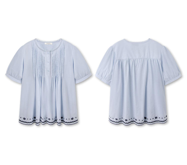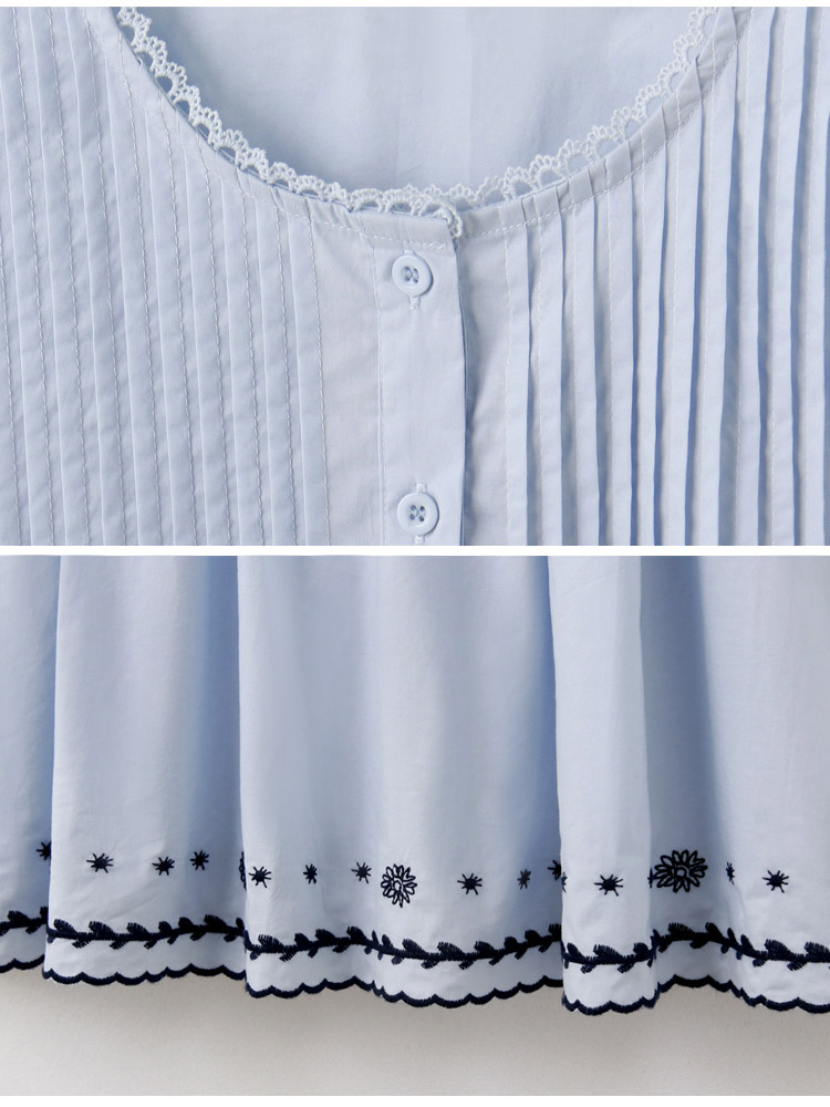 Product Feature: โ Crafted from breathable, pure cotton. โ Delicate lace collar with embroidered detailing. โ Flattering pleated, flared hemline. โ Features puff sleeves for a chic silhouette.