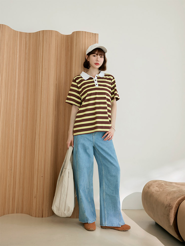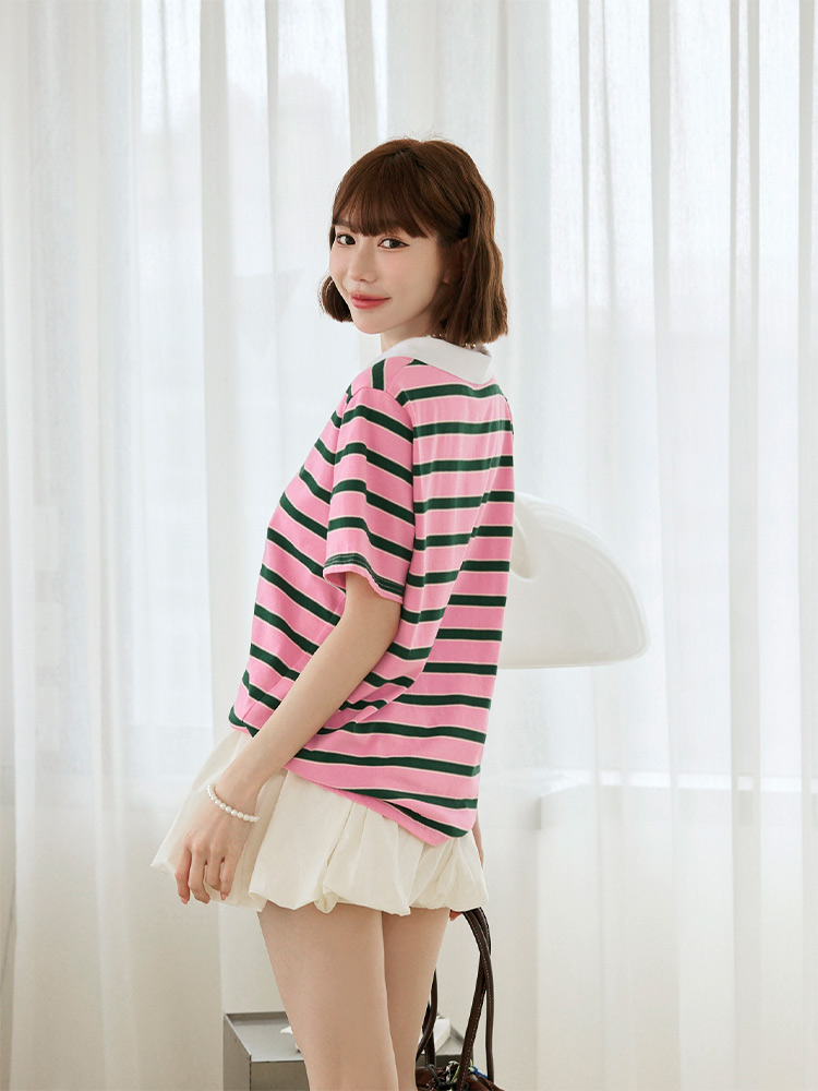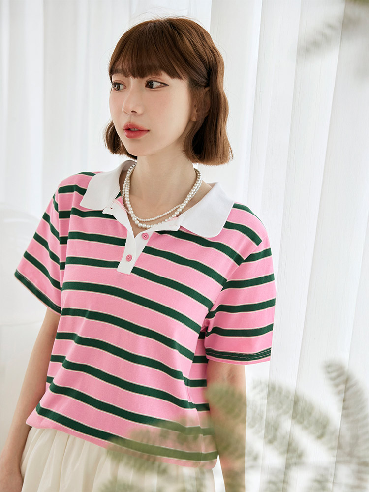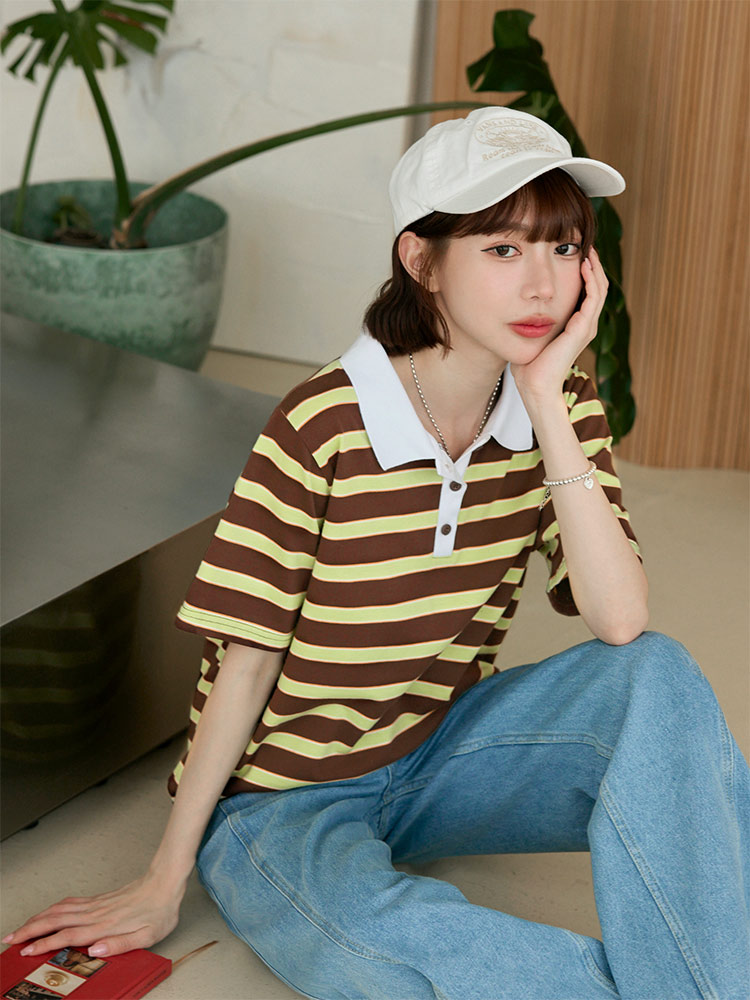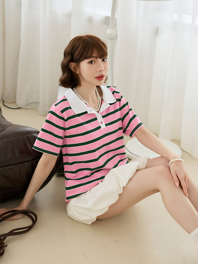 Striped Cotton Polo Shirt (F~3XL)