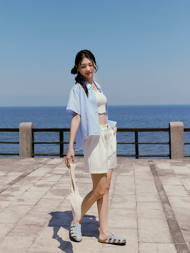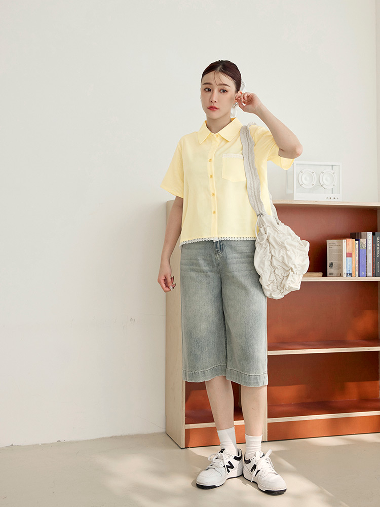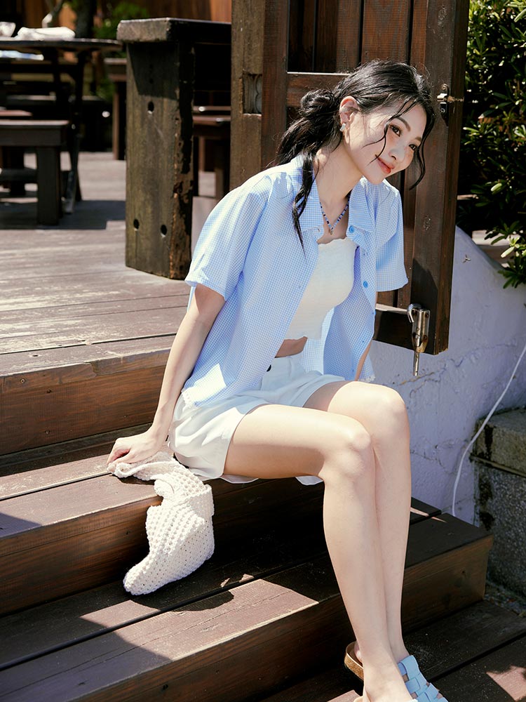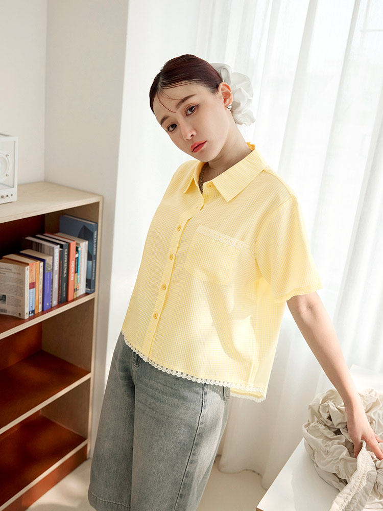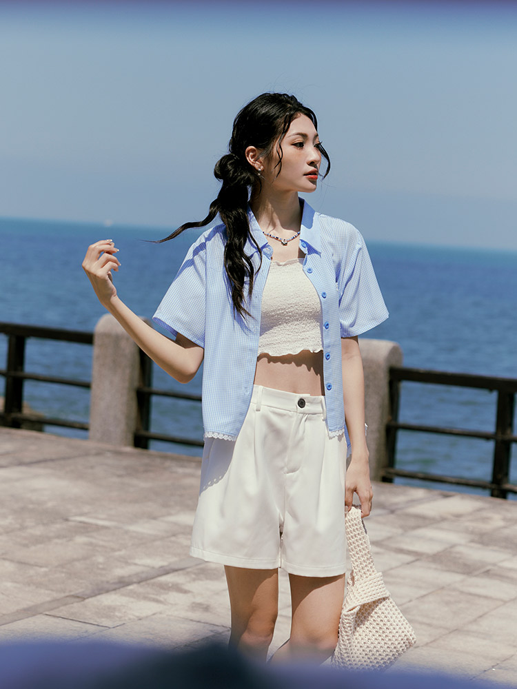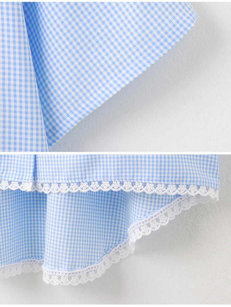 Product Feature: โ Crafted from soft, breathable plaid fabric. โ Featuring delicate lace trim on the hemline for added detail. โ Designed with a relaxed fit for ultimate comfort. โ Button-up front with functional pockets.