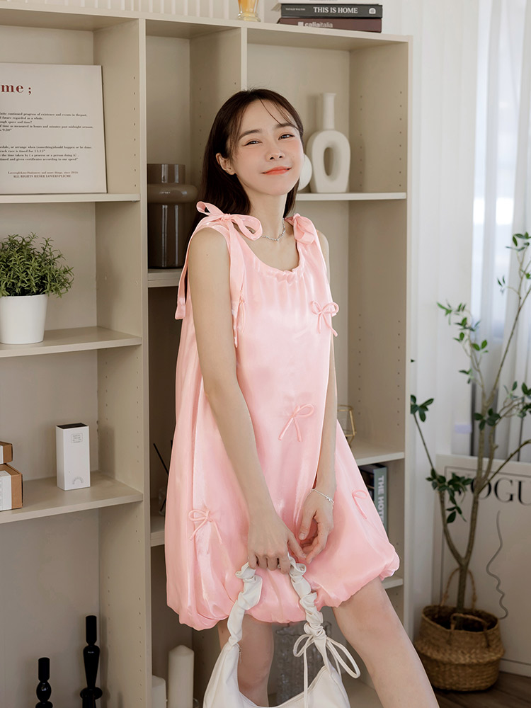Product Feature: โ Crafted from a glossy, smooth fabric. โ Features a charming bow detail. โ Designed with a flattering tulip skirt. โ Adjustable straps for a perfect fit.