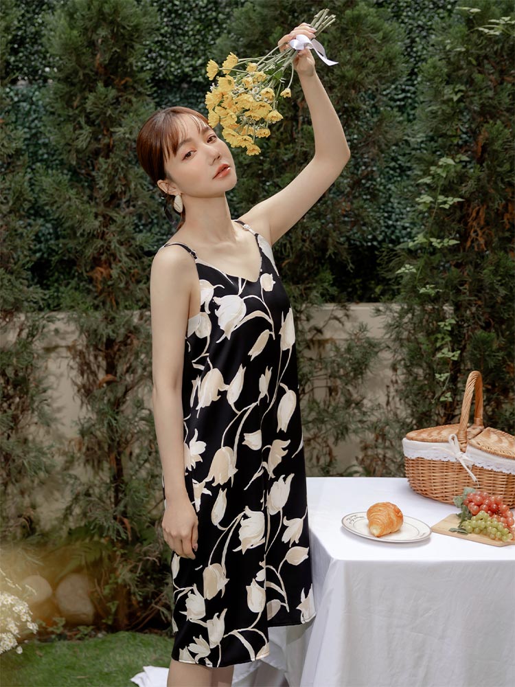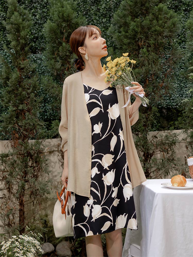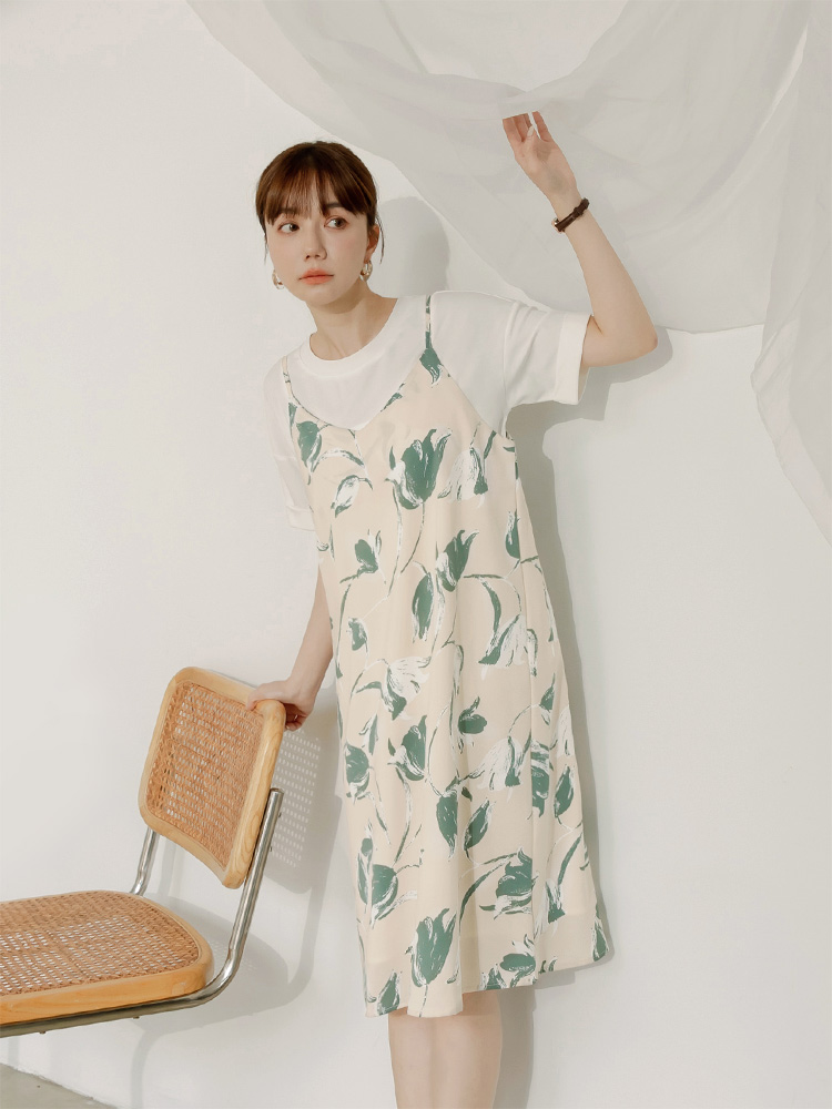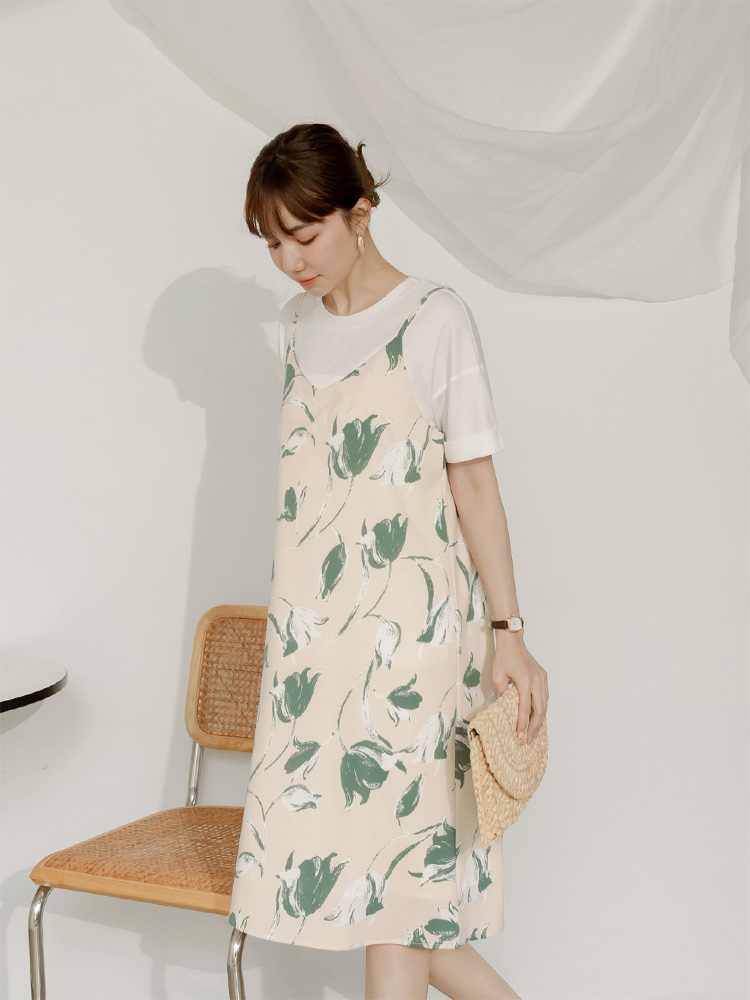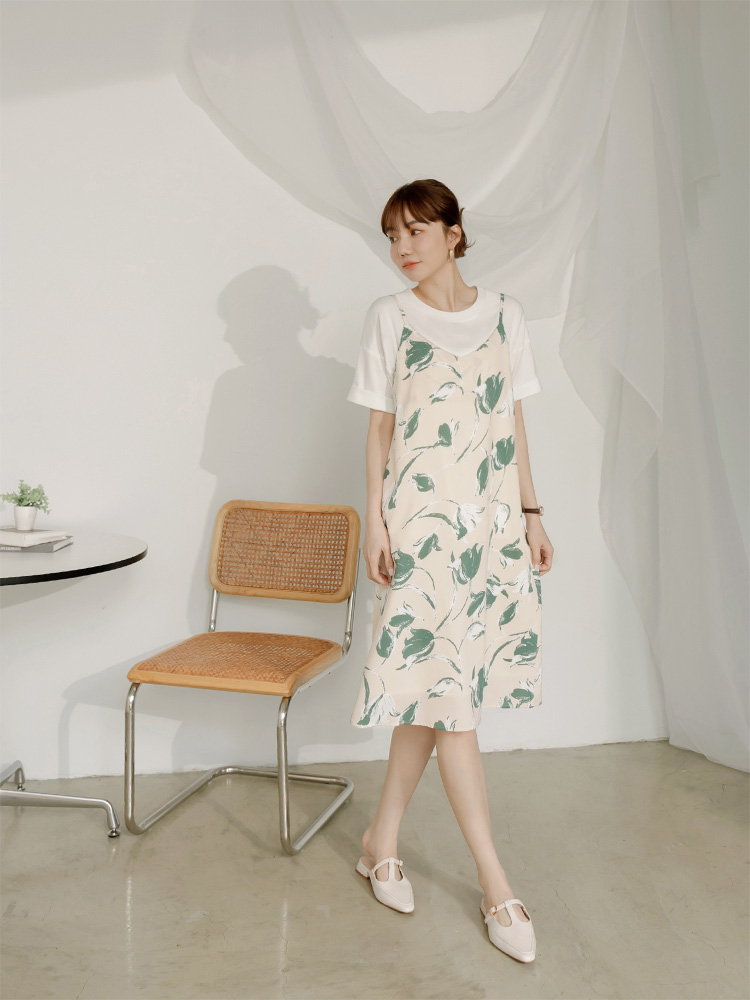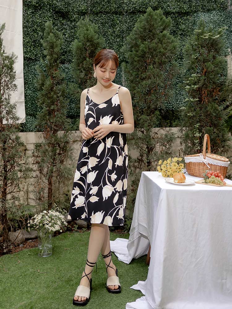 Printed V-Neck Slip Dress (2XL~4XL)