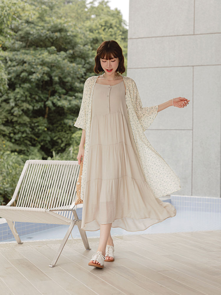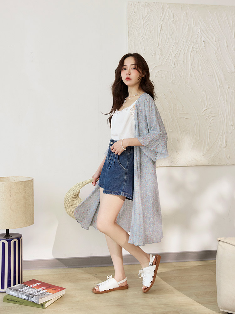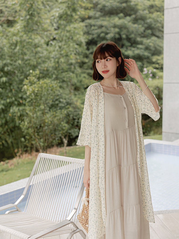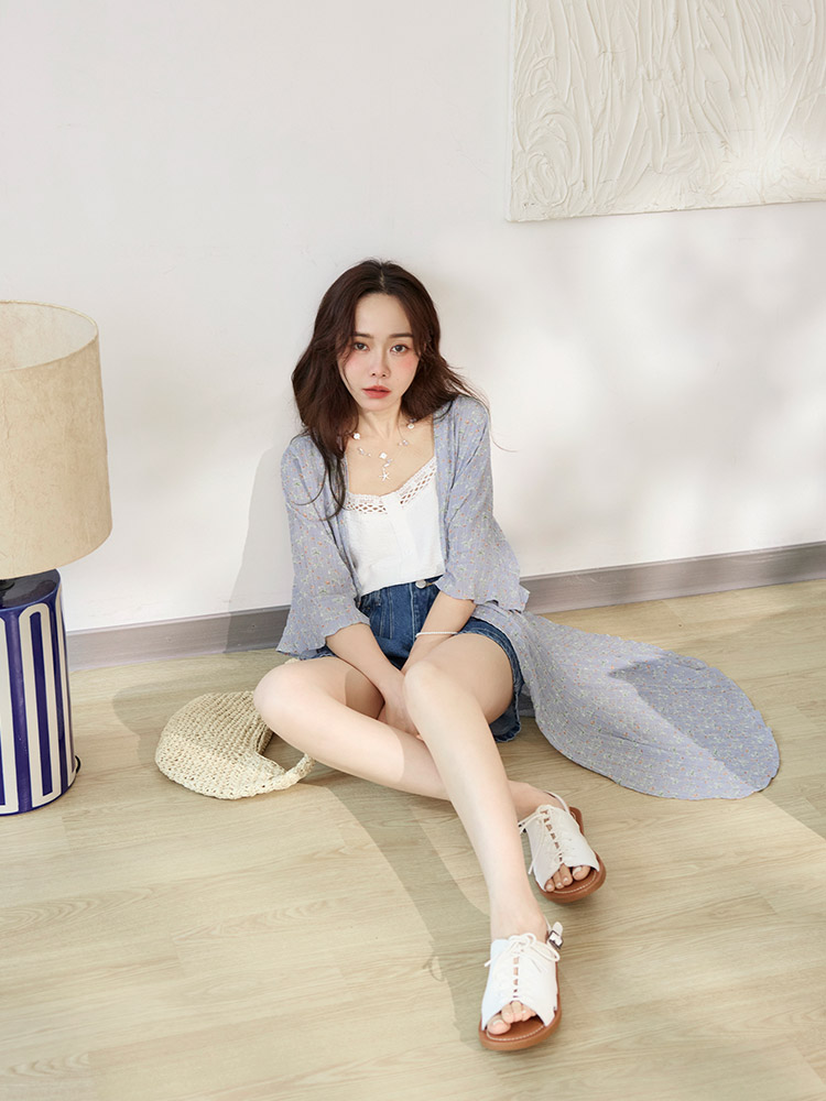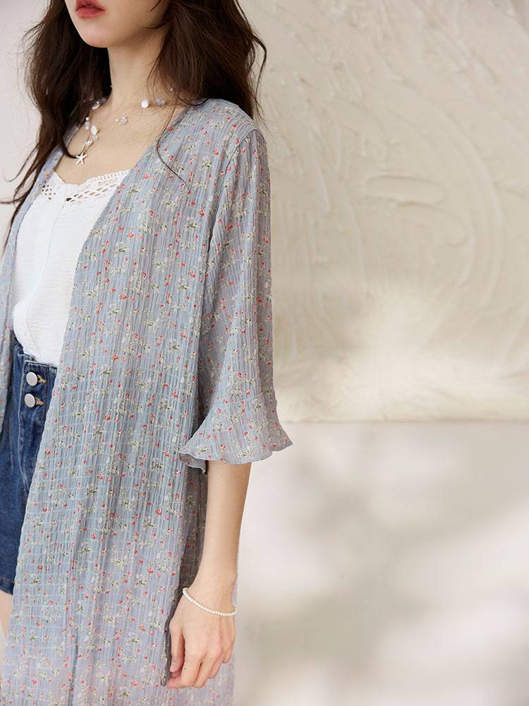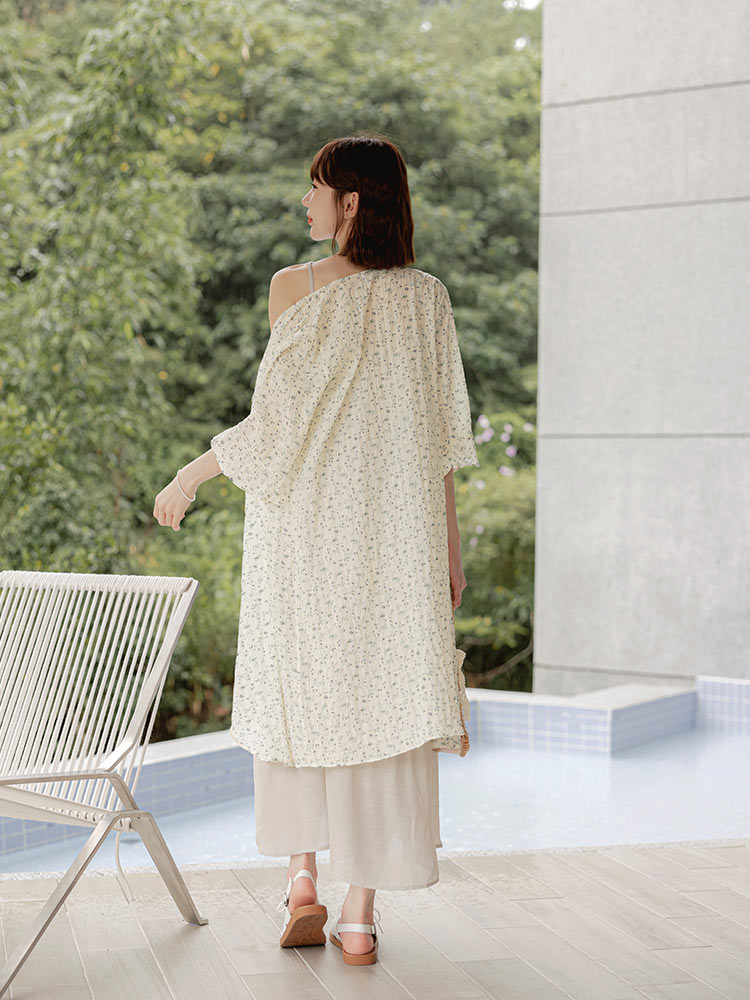 Product Feature: โ Crafted from soft, skin-friendly fabric with a charming floral print. โ Features a flattering longline cut to gently skim the figure. โ Delicate ruffle sleeves for an elegant silhouette.