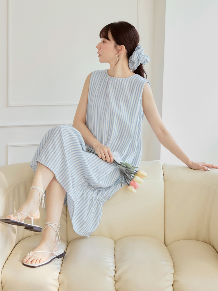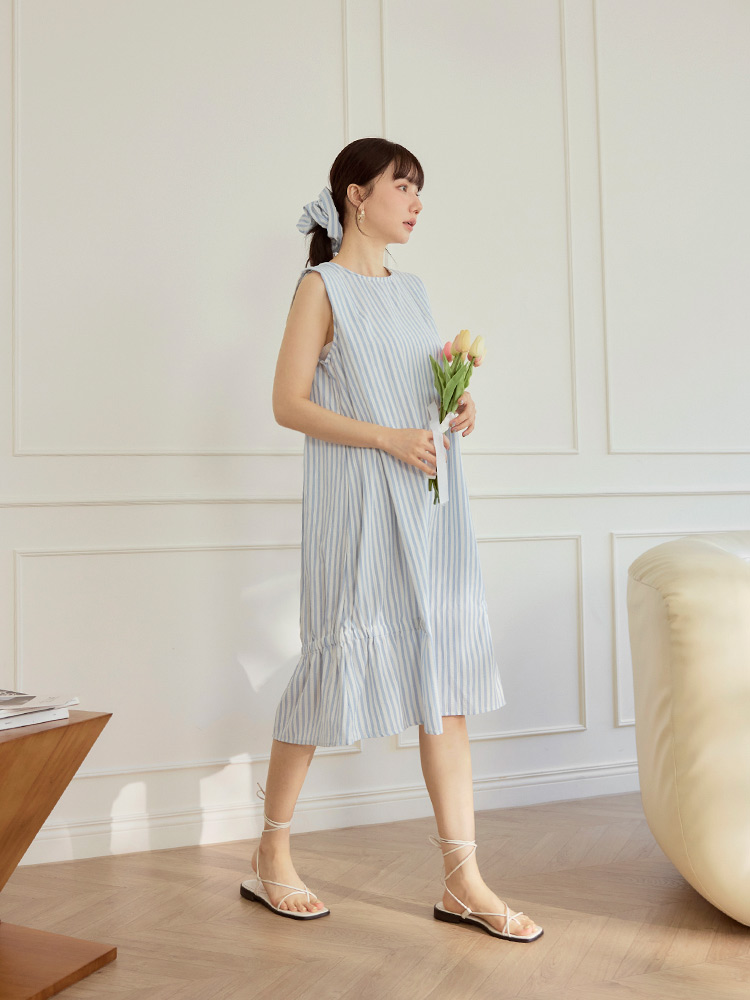 Product Feature: โ Crafted from a breathable blend of cotton and polyester โ Features a flattering scrunch detail at the hem โ Includes a matching hair tie that can be worn as a bracelet