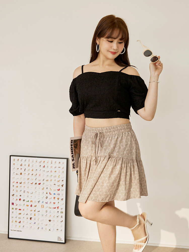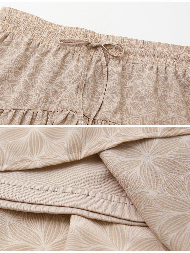 Product Feature: โ Features a flattering A-line silhouette. โ Crafted from a delicate printed fabric. โ Designed with an elasticated waistband and adjustable tie. โ Includes built-in shorts for coverage and comfort.