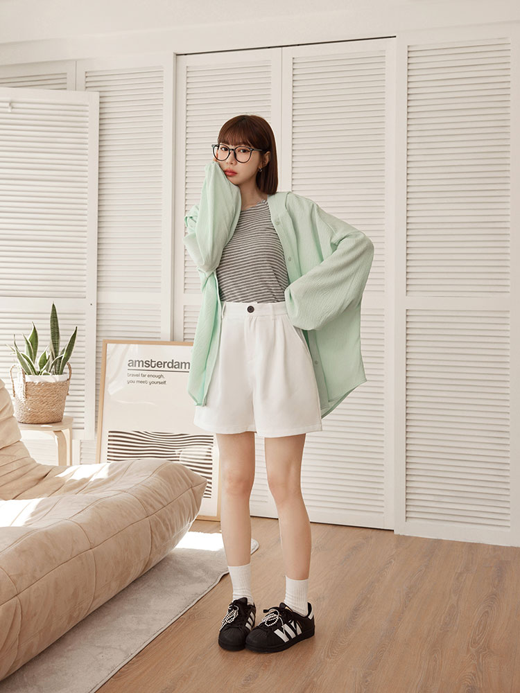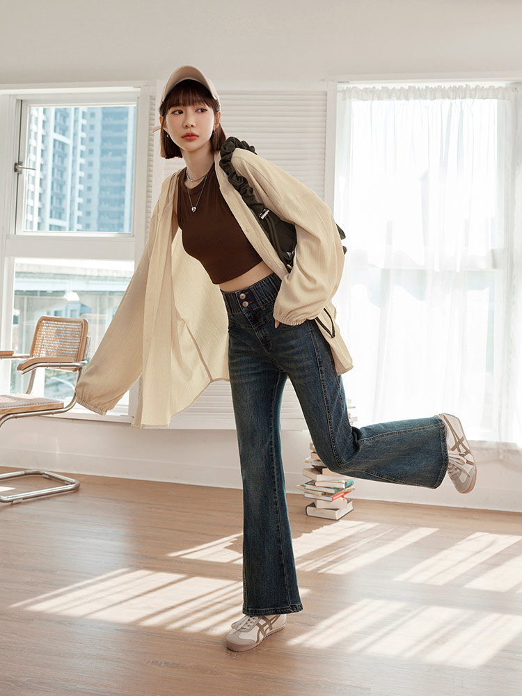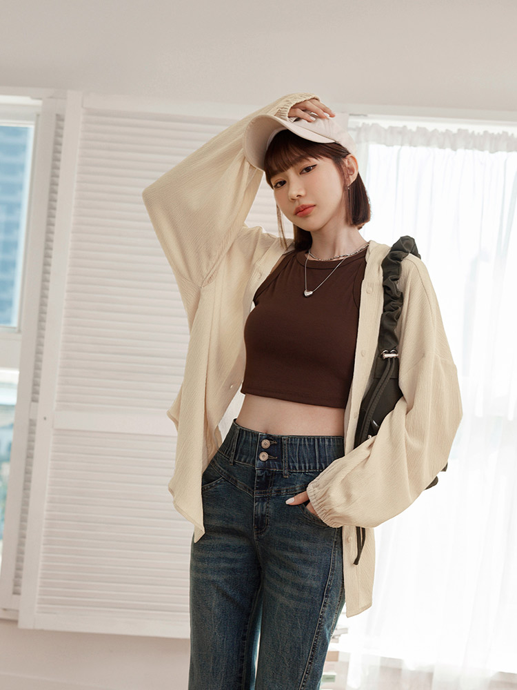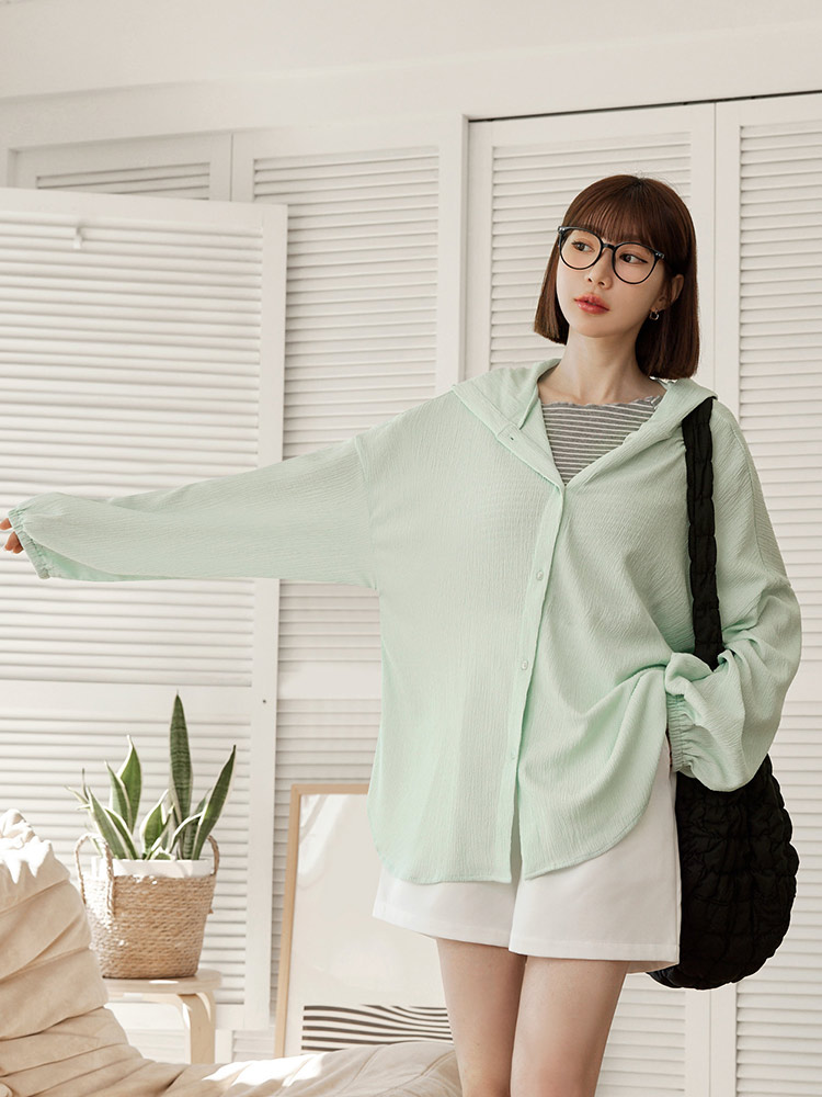 Product Feature: โ Textured fabric adds a touch of elegance โ Longline cut for a flattering silhouette โ Elasticated cuffs for a comfortable fit โ Button-up front