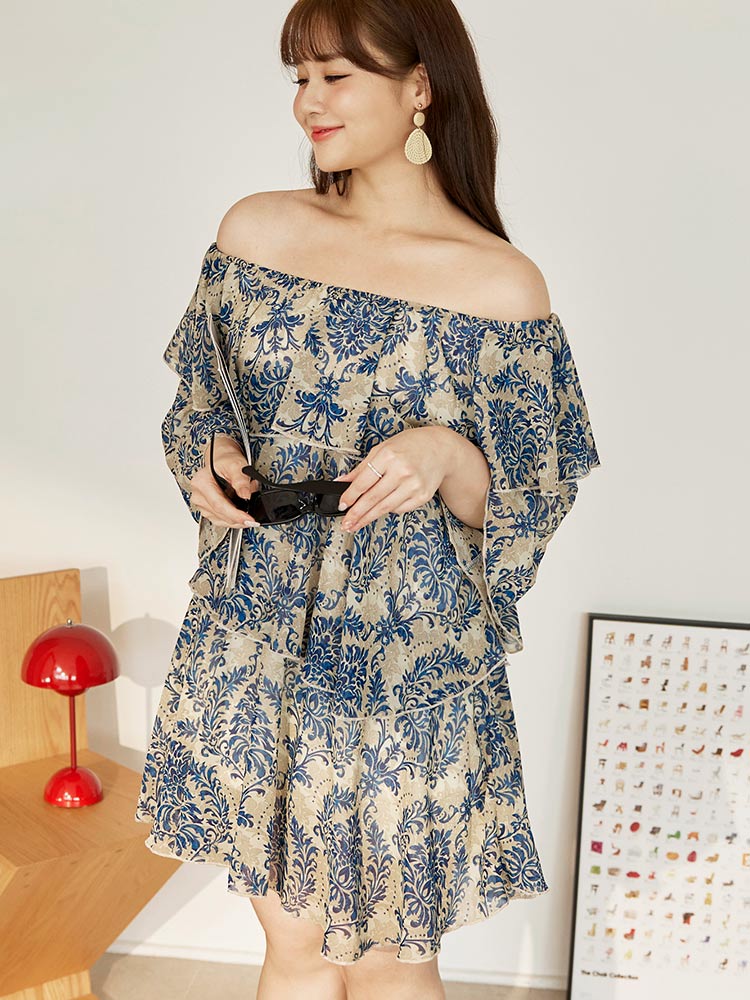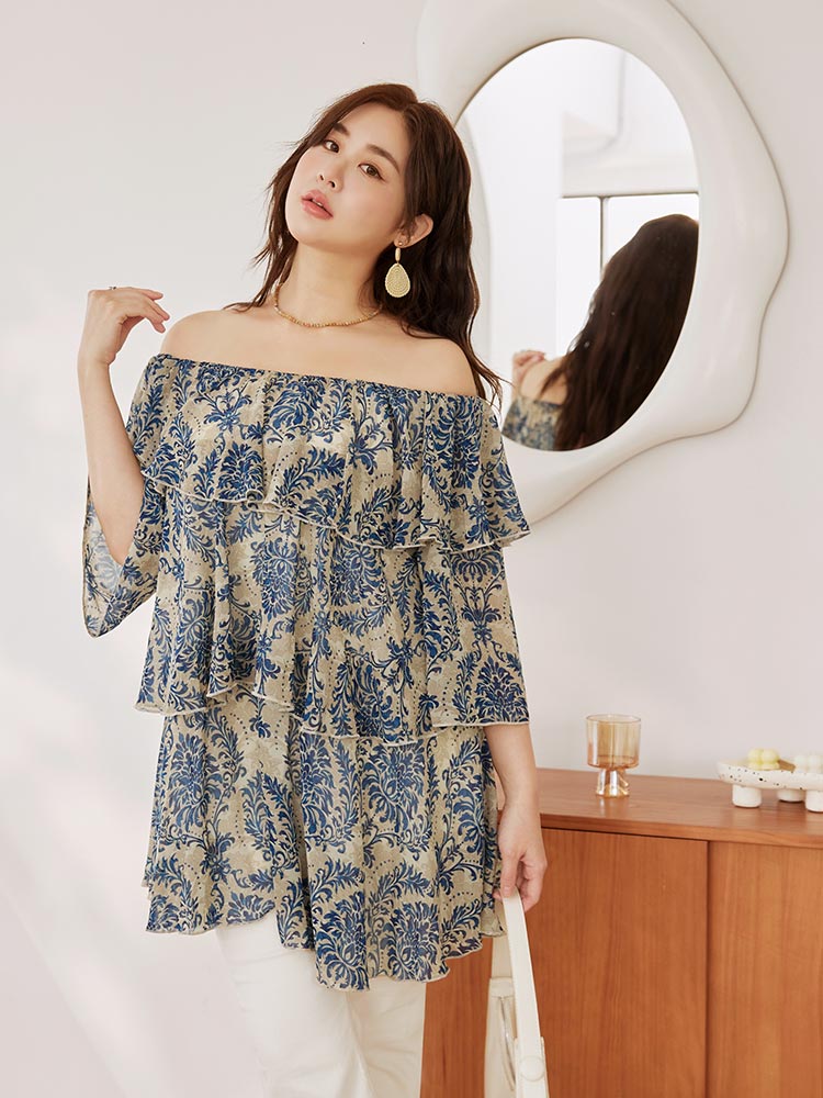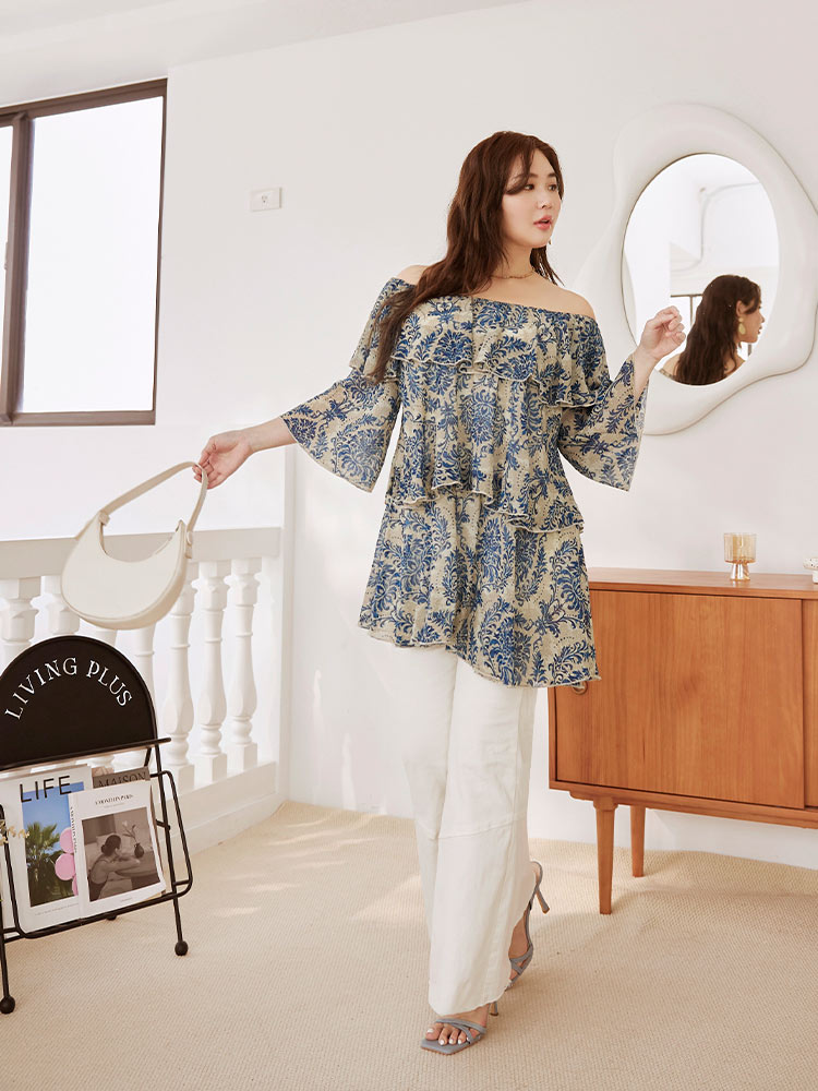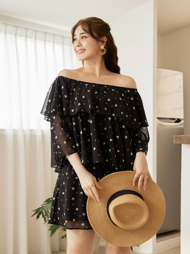 Product Feature: โ Designed with a versatile two-way neckline (off-shoulder or round) โ Features a flattering ruffle design โ Loose sleeves to conceal upper arms โ Made from smooth, non-stretch polyester