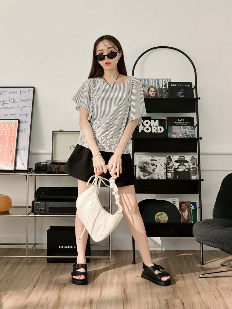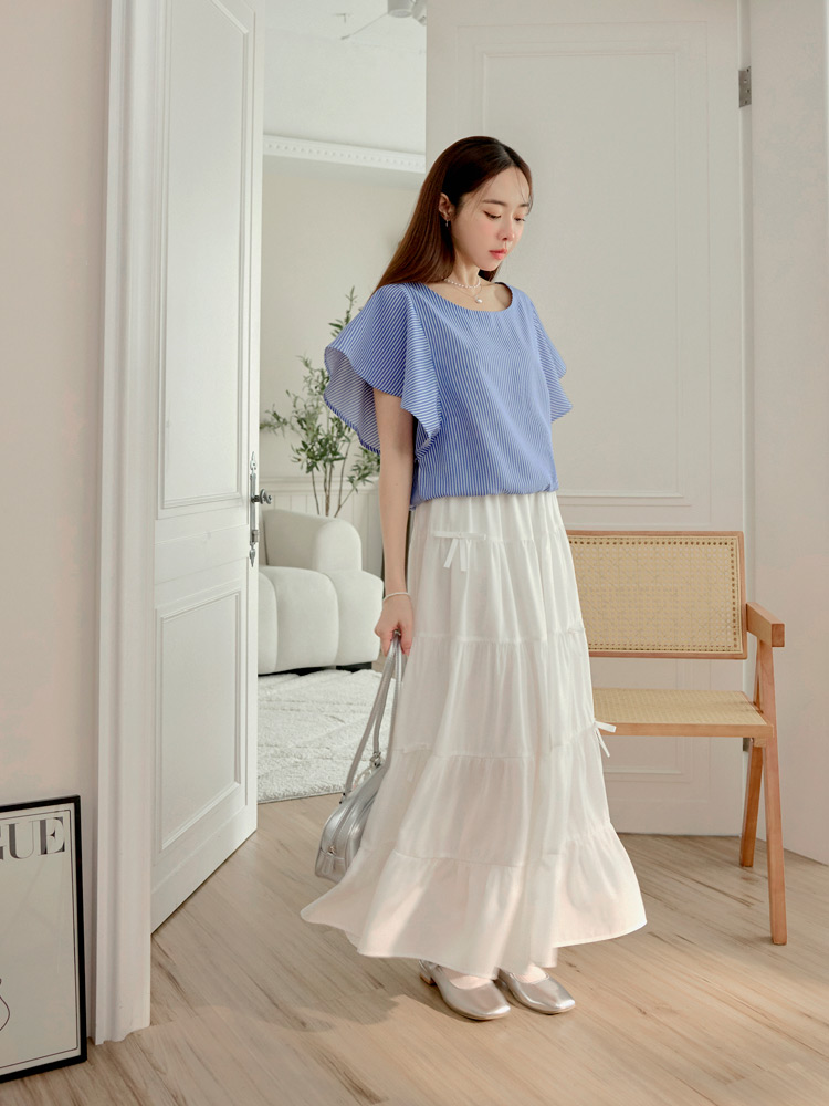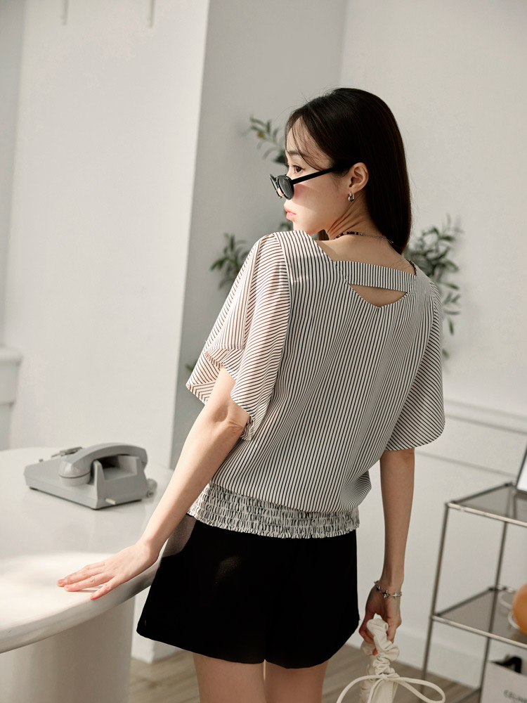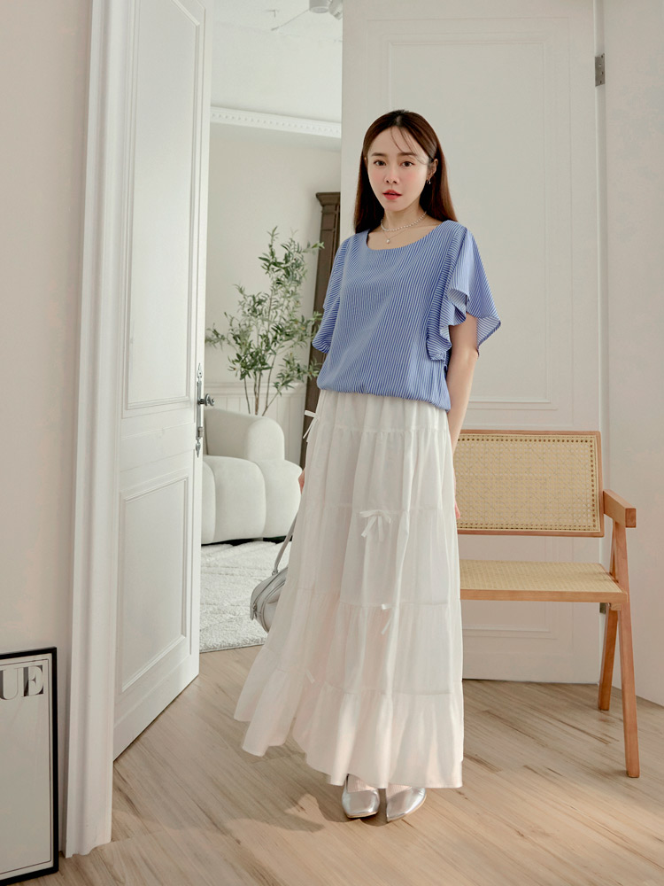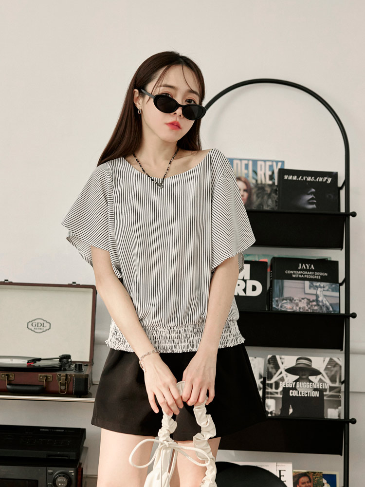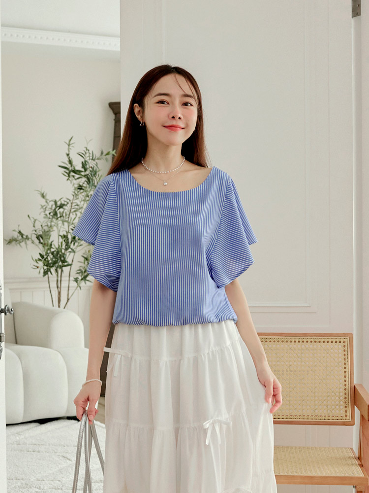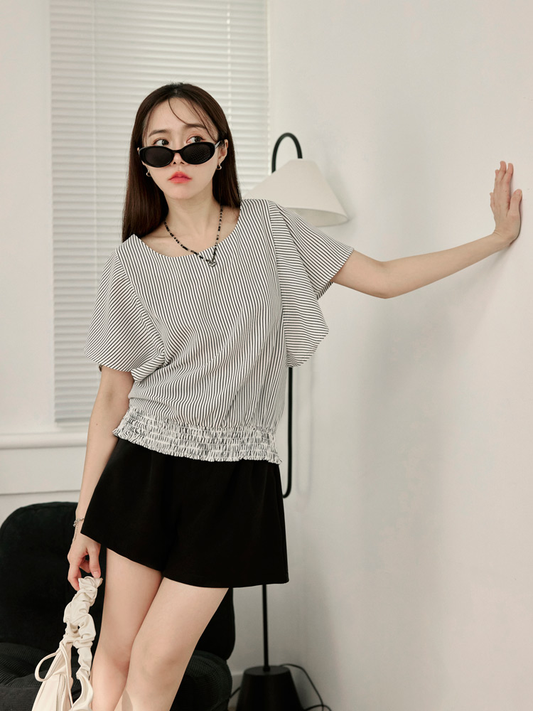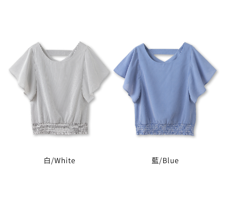 Product Feature: โ Features a flattering ruffle-sleeve design. โ Designed with an elastic hem for a comfortable fit and enhanced shape. โ Made from a blend of polyester and cotton.