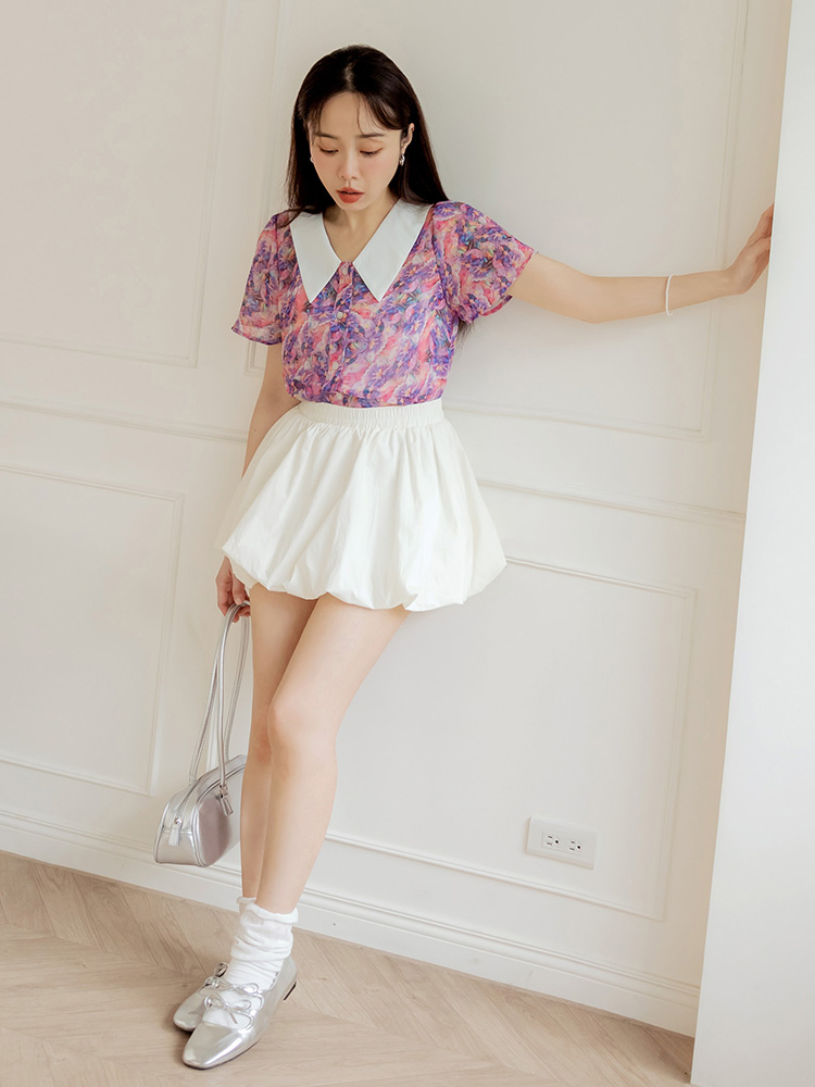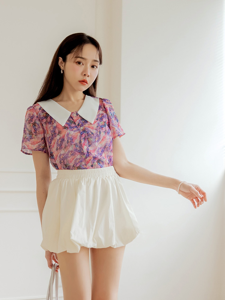 Printed Colour-Block Point Collar Blouse (2XL~3XL)
