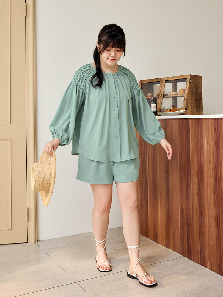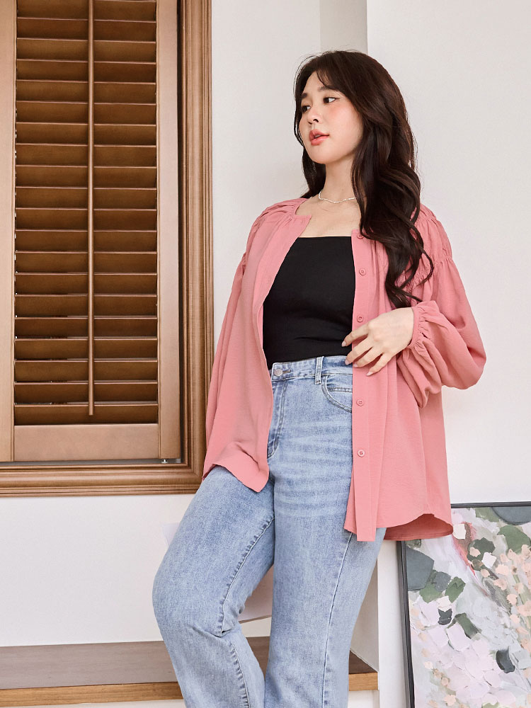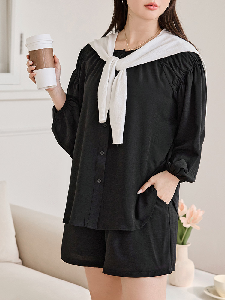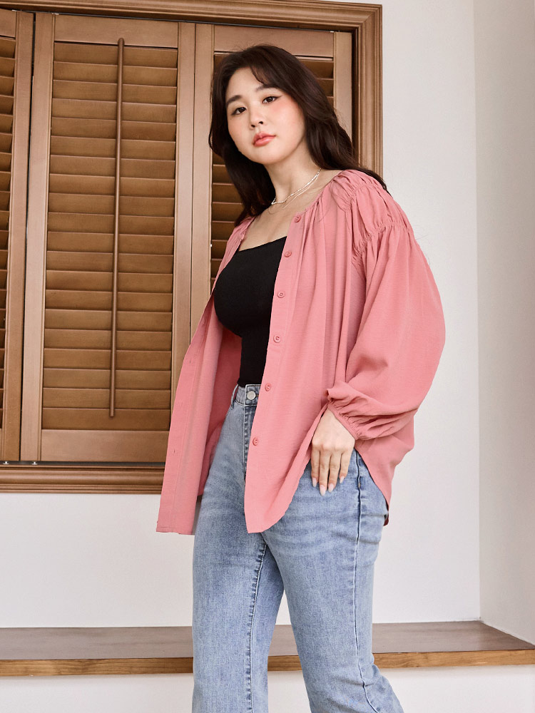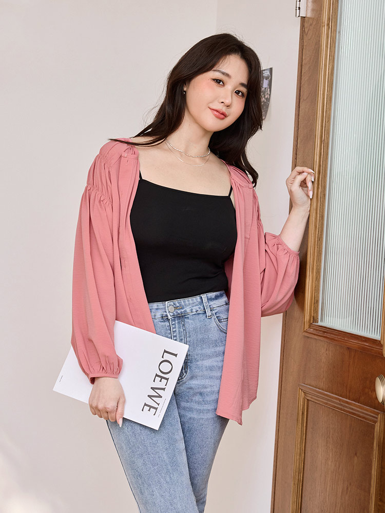 Gathered Sleeve Open Cardigan Top (XL~3XL)