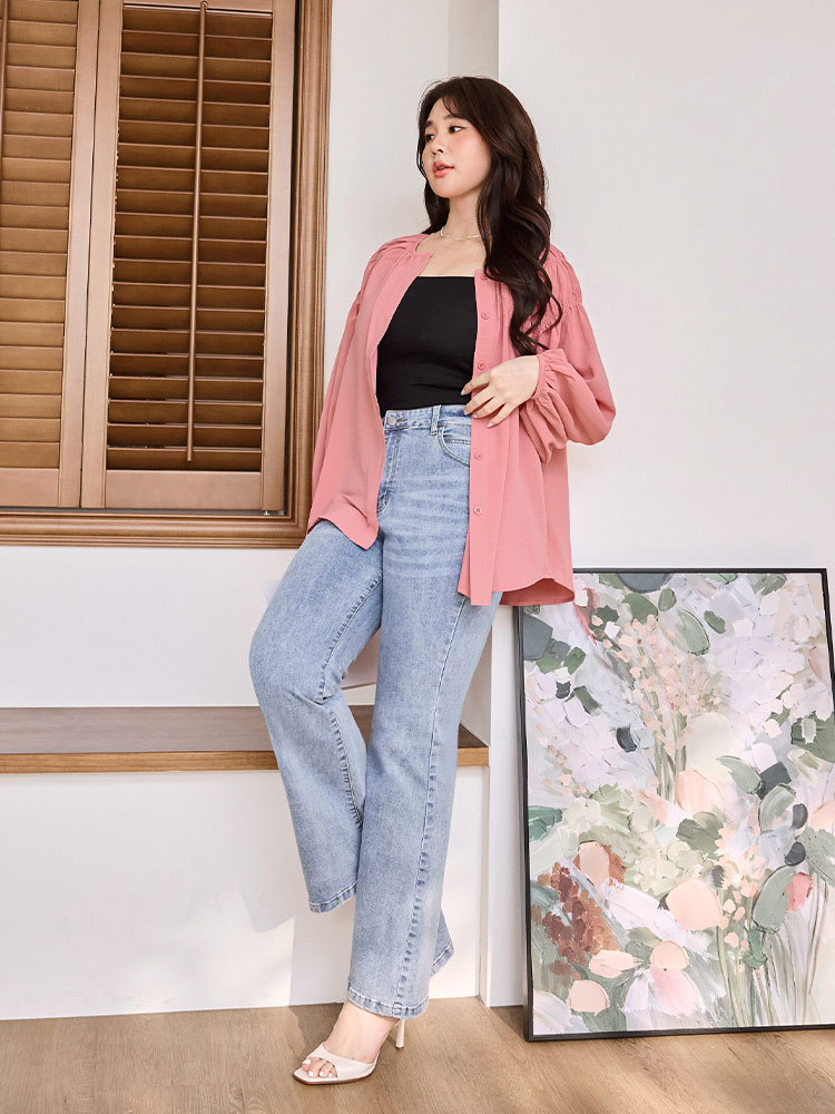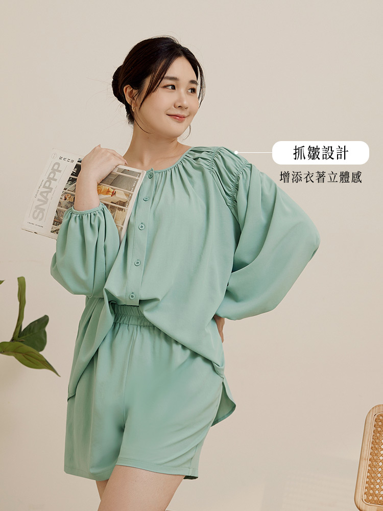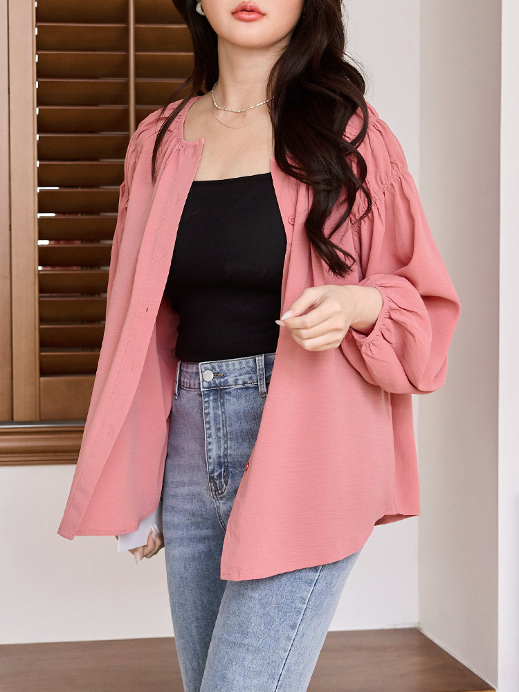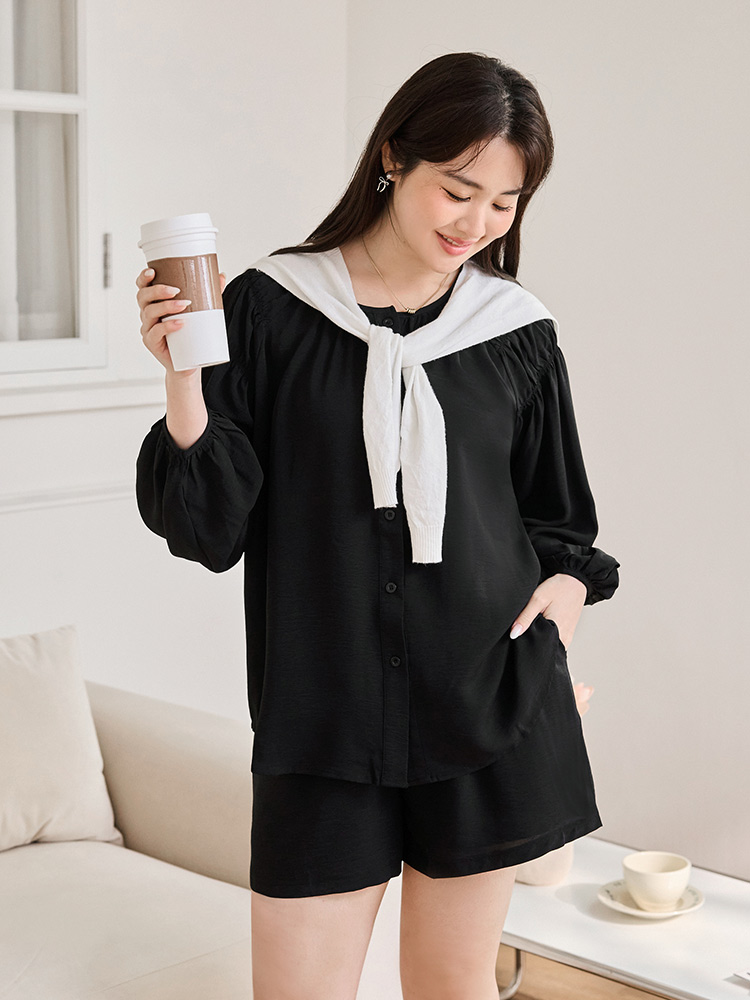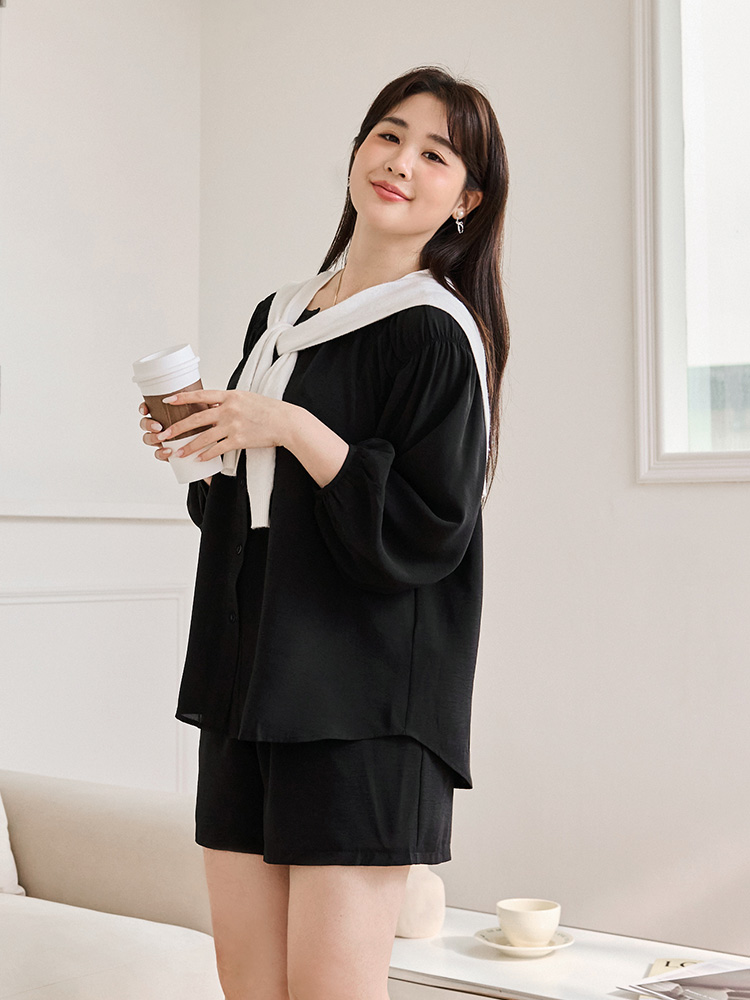 Gathered Sleeve Open Cardigan Top (XL~3XL)