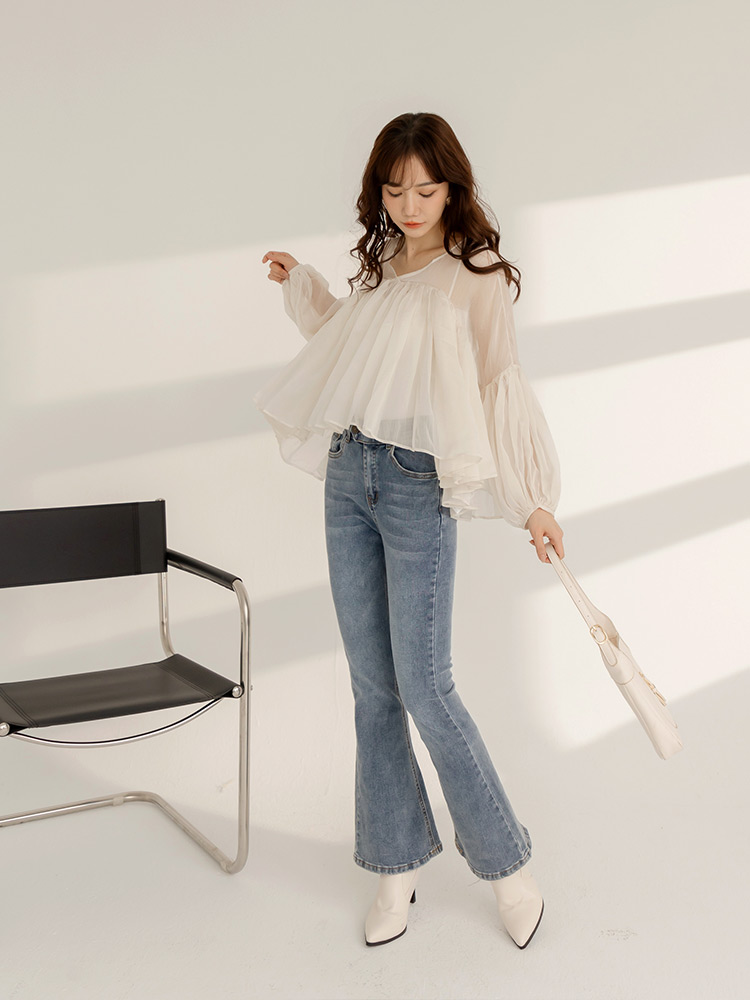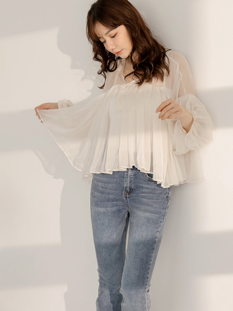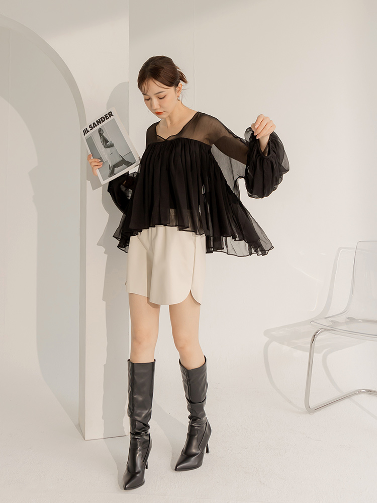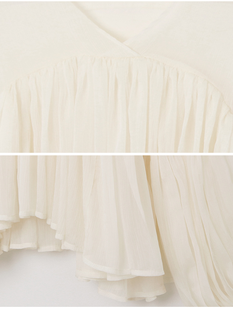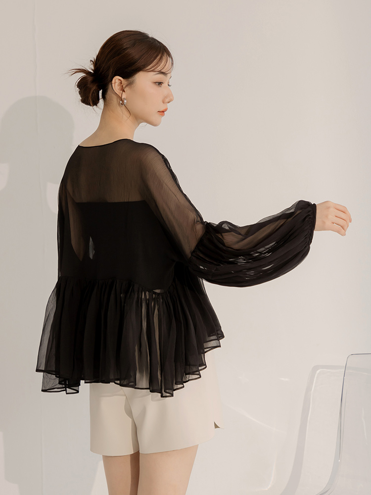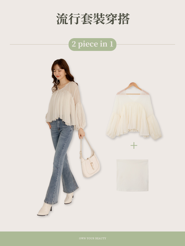 Product Feature: โ Features a two-piece design with a detachable inner layer โ Delicate mesh panelling for an elegant touch โ Crafted from flowing chiffon fabric