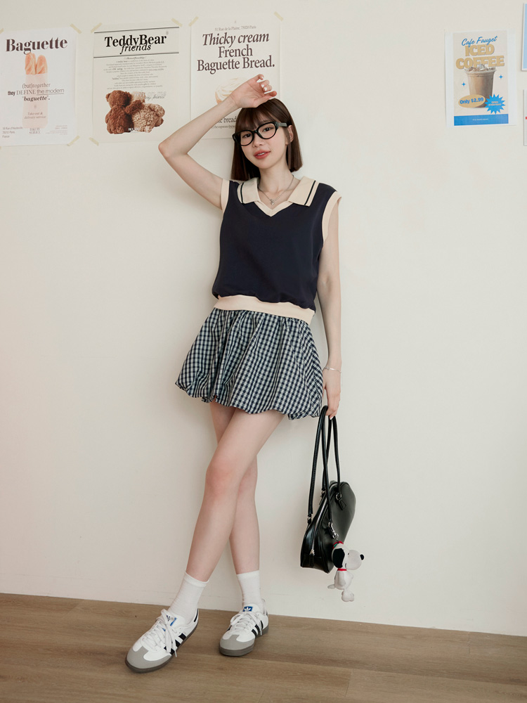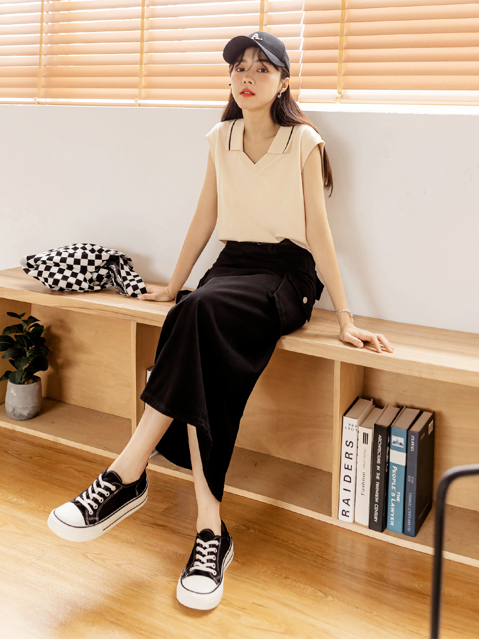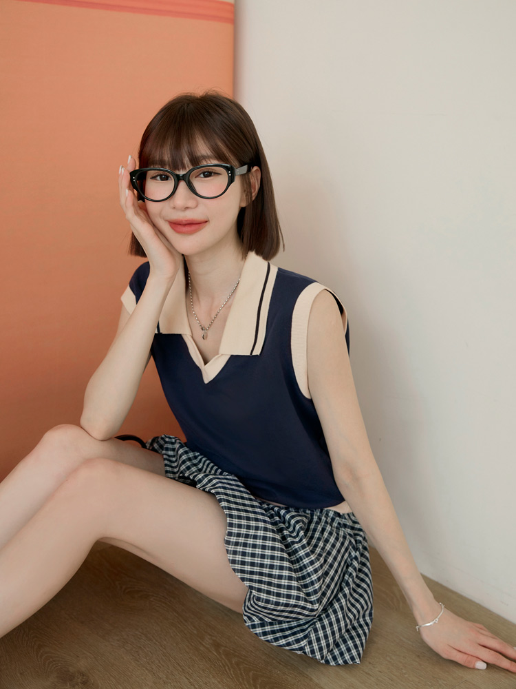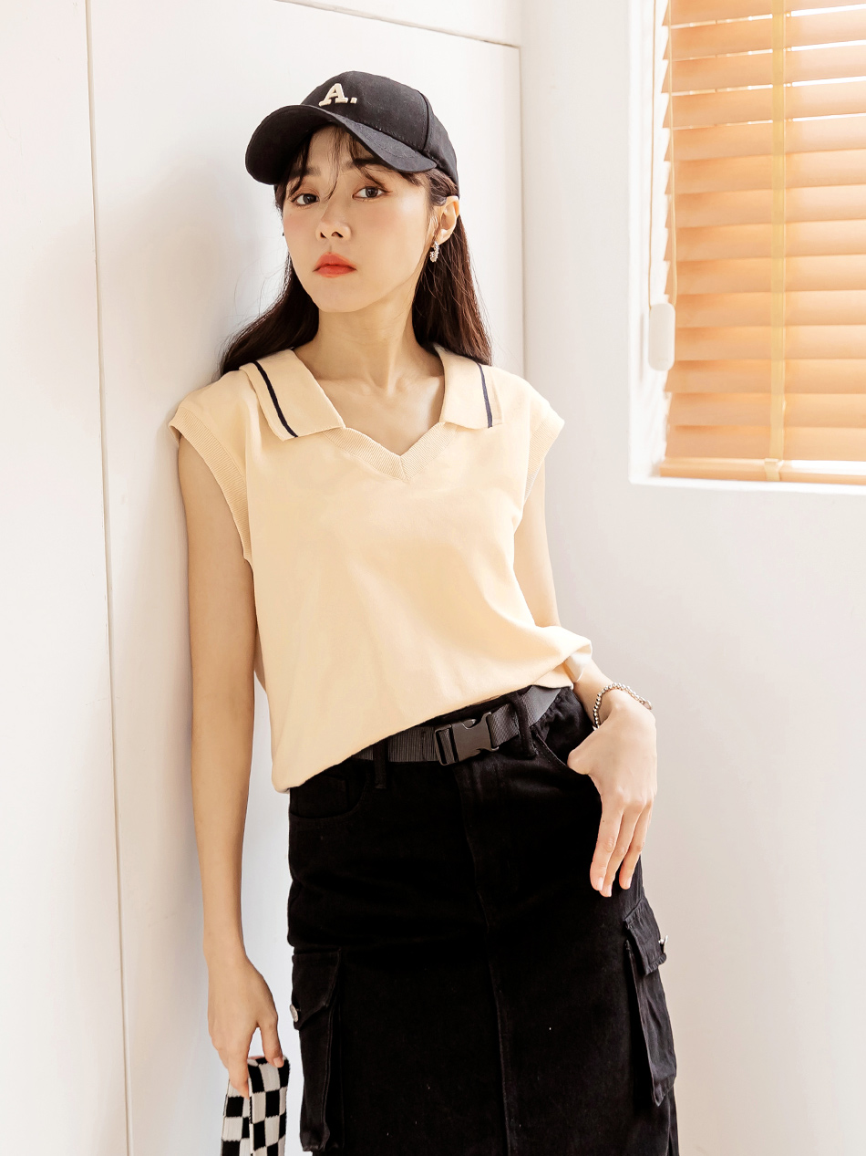 Product Feature: โ Crafted from soft, skin-friendly cotton knit โ Features a stylish colour-block design on the collar โ Designed with a flattering cropped cut to elongate your silhouette